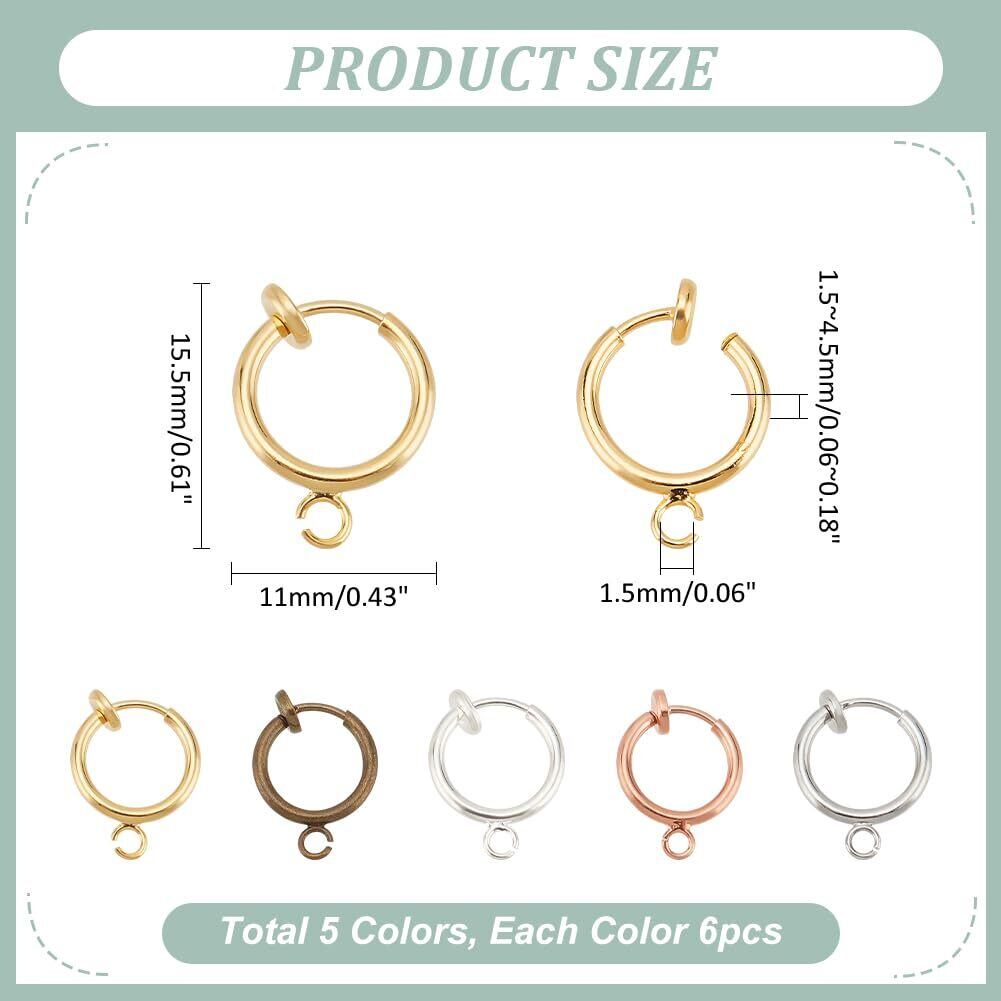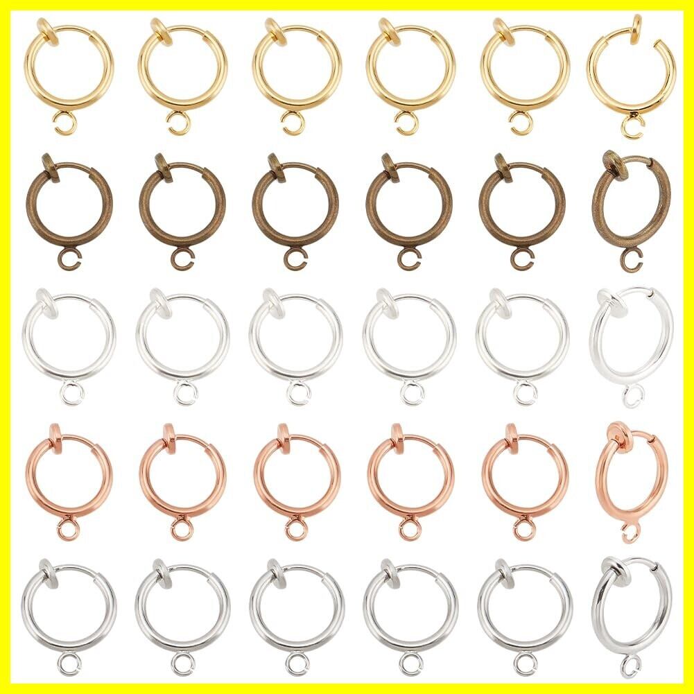 PH PandaHall 約36個 6色 真鍮 クリップ イヤリング ピアス イヤーカフ フェイクピアス メンズ レディース サージカル 金属アレルギー対応 ノンホール フープ リング イヤリング DIY用品 クラフト 手芸用品 ジュエリー用