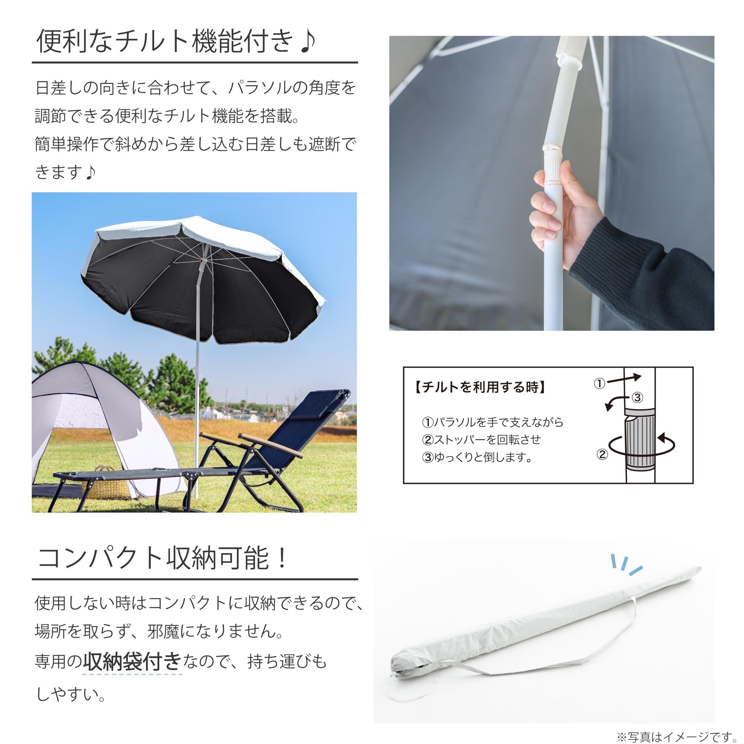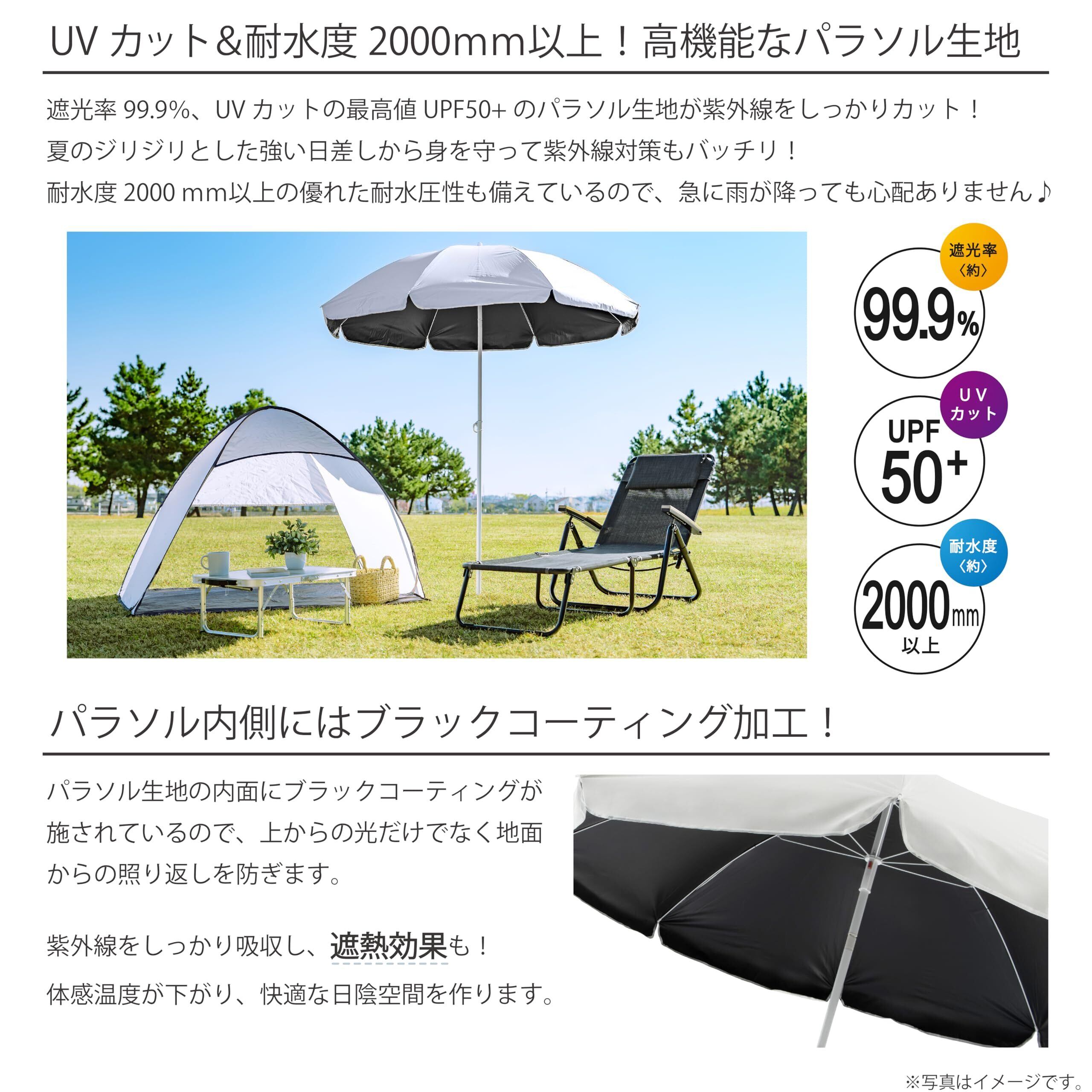 武田コーポレーション 【ビーチ・アウトドア・UVカット】 ホワイト 176×176×197cm UVカットパラソル チルト付き ブラックコーティング SBB24-2000
