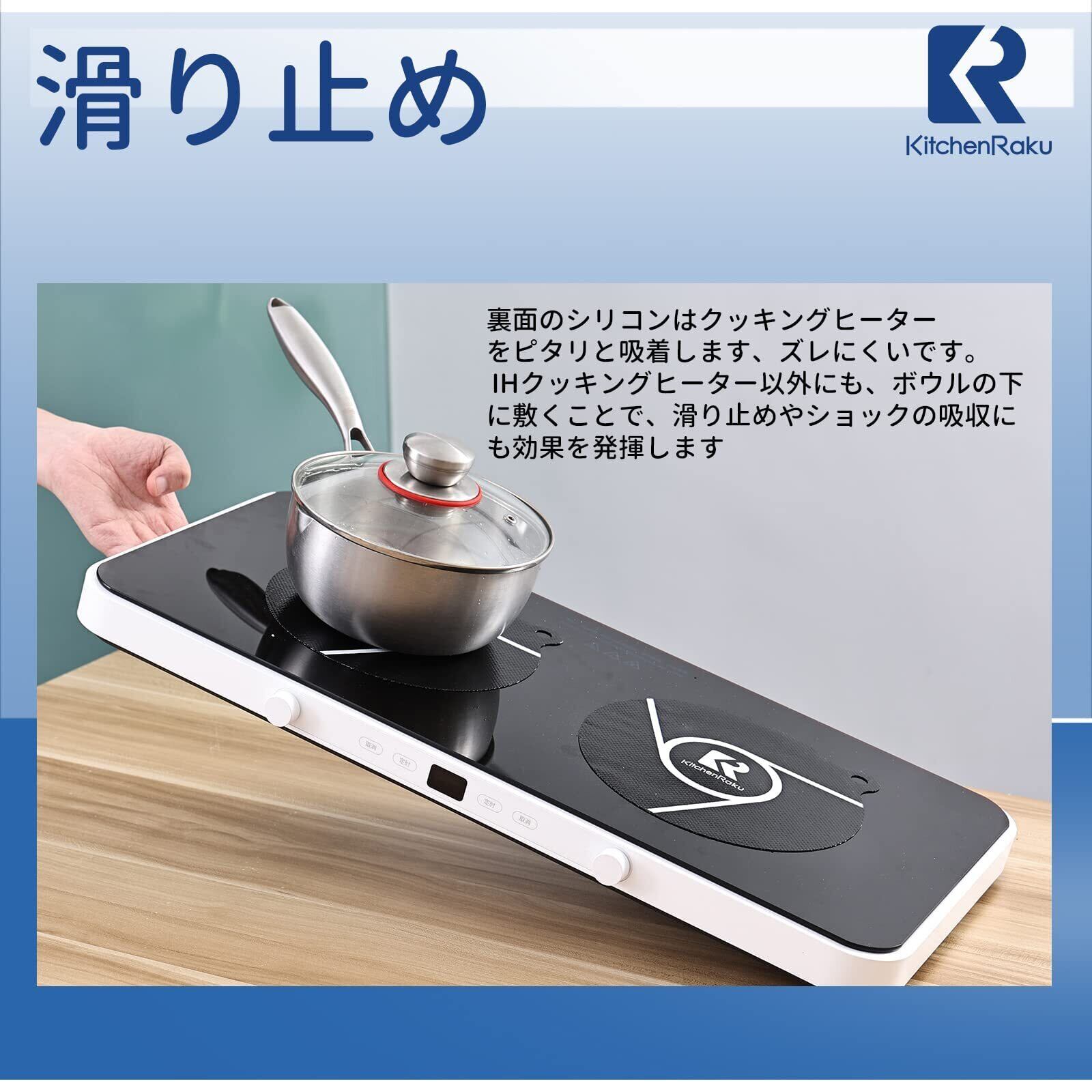 【滑り止め】裏面のシリコンはクッキングヒーターをピタリと吸着します、ズレにくいです。 IHクッキングヒーター以外にも、ボウルの下に敷くことで、滑り止めやショックの吸収にも効果を発揮します。
