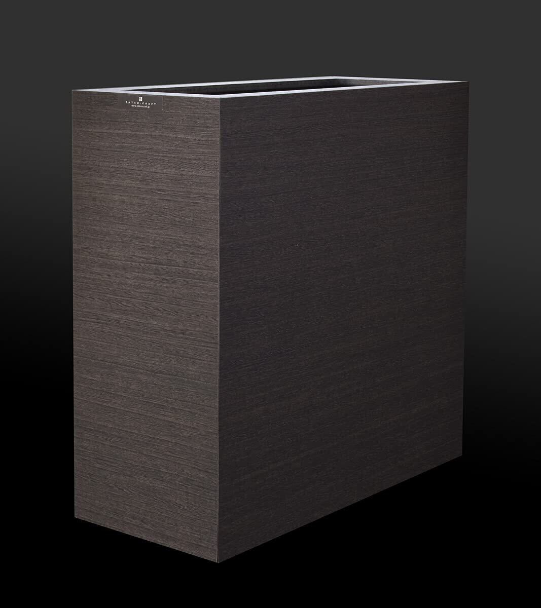 【商品仕様】サイズ 132×300×300mm 重量 1450g 容量 8.5L 材質 プリント紙化粧繊維板(低ホルムアルデヒドのF認定品を使用) ウレタン塗装(断面部のみ)原産国 日本製(和歌山県海南市)製造 橋本達之助工芸【商品の特徴】シャープなイメージの木合板ダストボックス。フローリングにも映える木目テイストが印象的です。ソファの側やデスクの下に置きたくなるような上質な質感がポイントで、上部のカバーは2重構造になっており、天面をフラットに見せるための上段カバーに加え、下段には袋留め専用の枠が付いています。ポリ袋などを取り付ければ、水分を含んだゴミも入れることができ、ゴミ箱にゴミを直接触れさせないようにすることもできます。衛生的に使えること、これは木材系のダストボックスには大切なポイントです。こちらは、シンプルさが強調されるブラックタイプ。ほんのりと茶系のテイストを感じる上質な雰囲気の黒色がインテリアにしっくり馴染み、ナチュラルなテイストがフローリングにもよく似合います。是非、ソファや家具の横に添えてみてください。本来、ゴミ箱は使い勝手のよい場所に置きたいもの。しかし、見た目にゴミ箱感が出すぎたものは、ついついお部屋の隅に隠してしまいがちに...。その点、バスクダストボックス スリムならお部屋の中の素敵なアクセントになります。また細身で幅を取りませんのでデスク下でも足下がすっきり邪魔になりません。