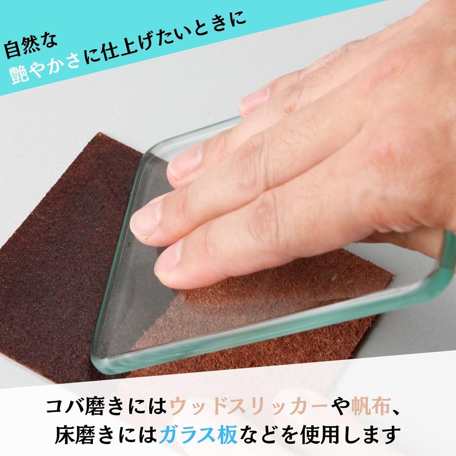 使用方法:布や綿棒などでコバまたは床面にすり込み、半乾きの状態でヘリみがきなどを使い擦って磨きあげます 床面の磨きにはガラス板などを利用します