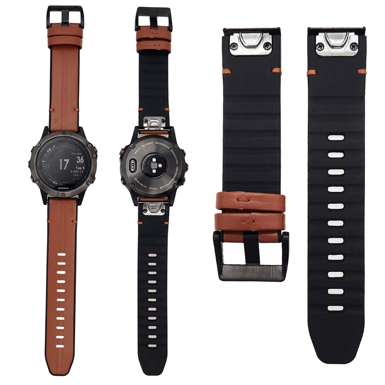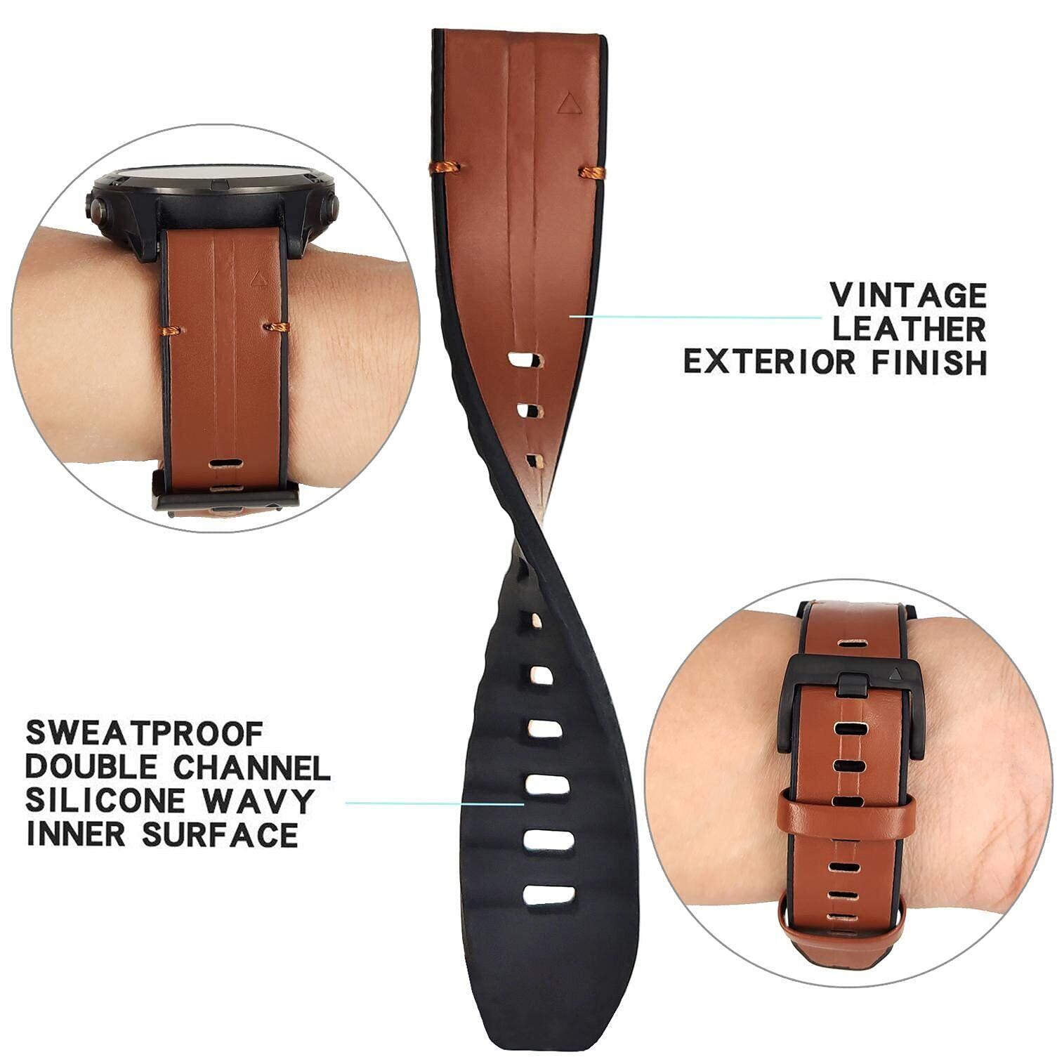 Ahayo QuickFit 22mm 交換本革 バンド に適合するガーミンFenix 8 47mm / Fenix 7/ epix Pro 47mm/ Fenix 6 / Fenix 5 / Approach S62,シリコンハイブリッドデザインの通気性ストラップベルト用の Garmin Approach S70 47mm (褐色)