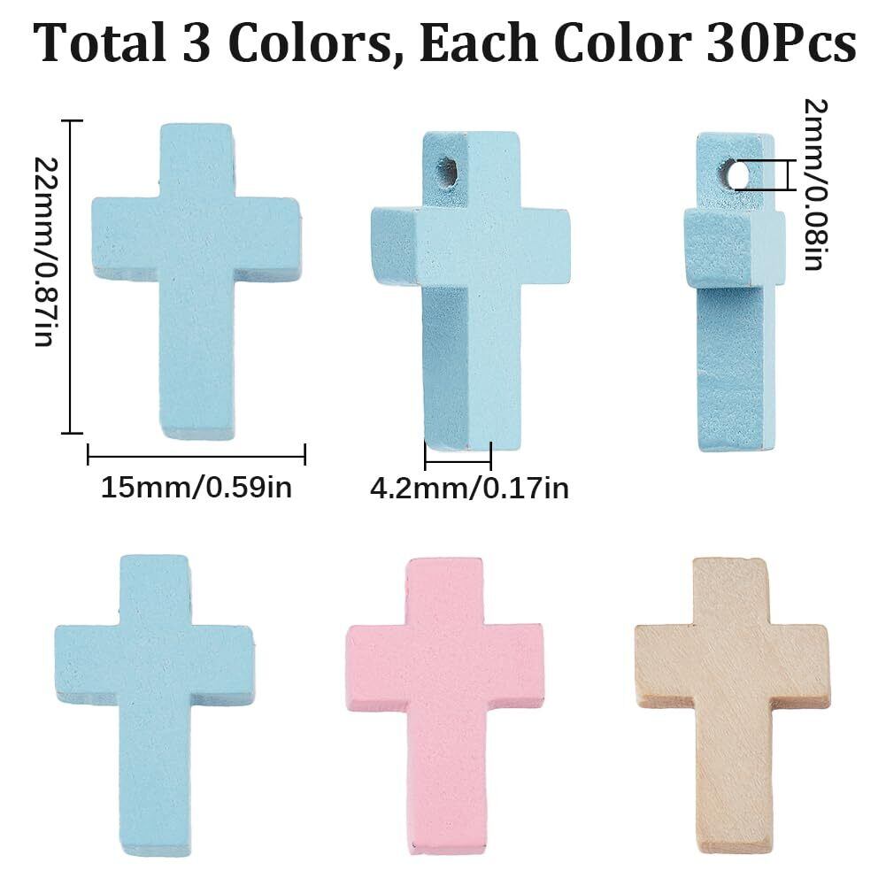 カラフルなクロスチャーム90個: マカロンカラーの小さなクロスチャーム90個をお届けします。 ピンク, 青と木の色, 色ごとに30個, 固定混合, 大量のミニクロスビーズチャームはあなたのDIYのニーズを満たすことができます.