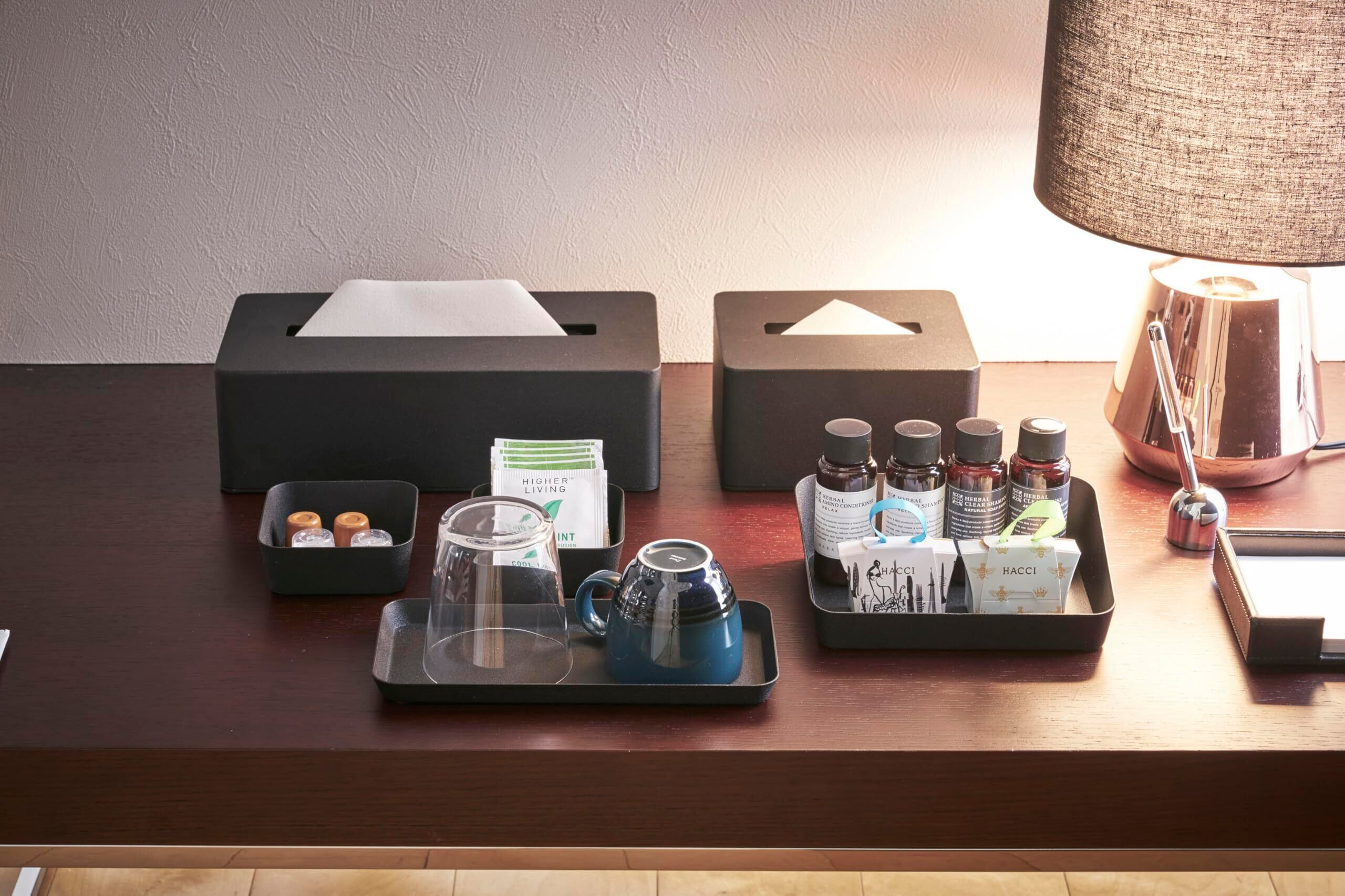 ホテルのアメニティーグッズ収納シリーズ。