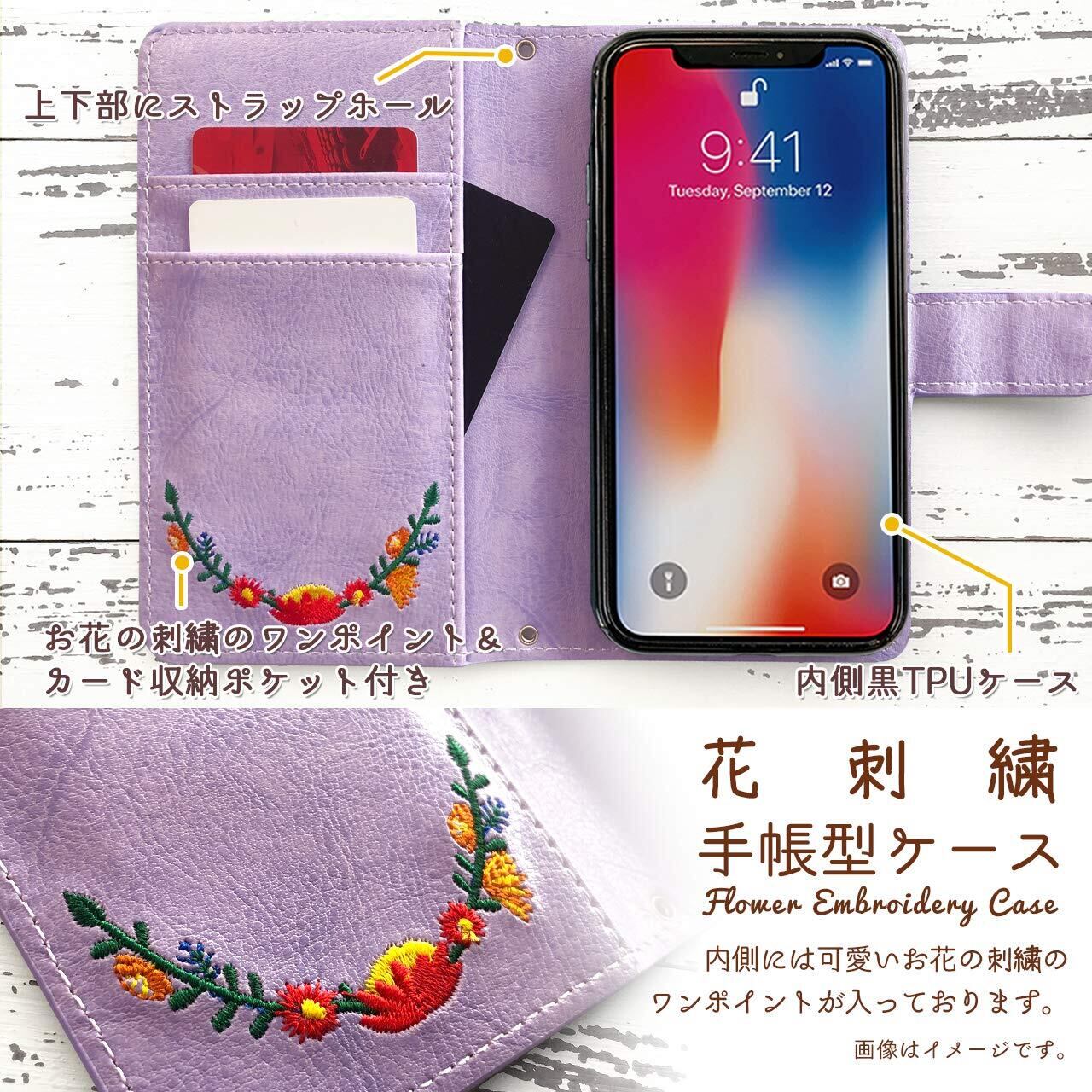 iPhone 14 Plus ケース カバー 手帳型ケース ケース カバー 手帳型 iPhone14Plusケース iPhone14Plusカバー iPhone14Plus 【NB】 花刺繍 ラベンダーパープル purple