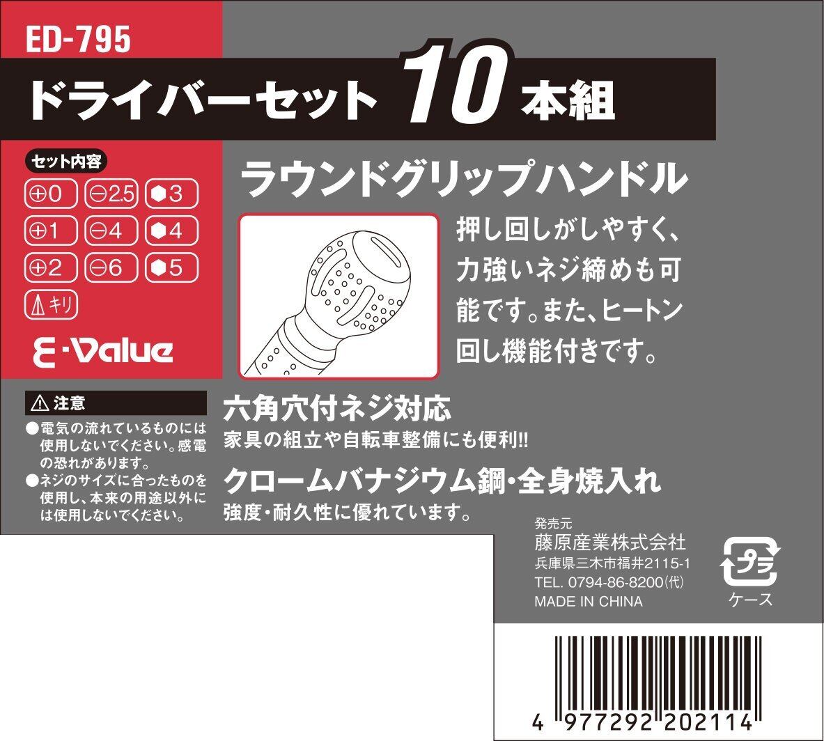 イーバリュー(E-Value) ドライバーセット ラウンドグリップ 六角穴付ネジ対応 ED-795 10本組