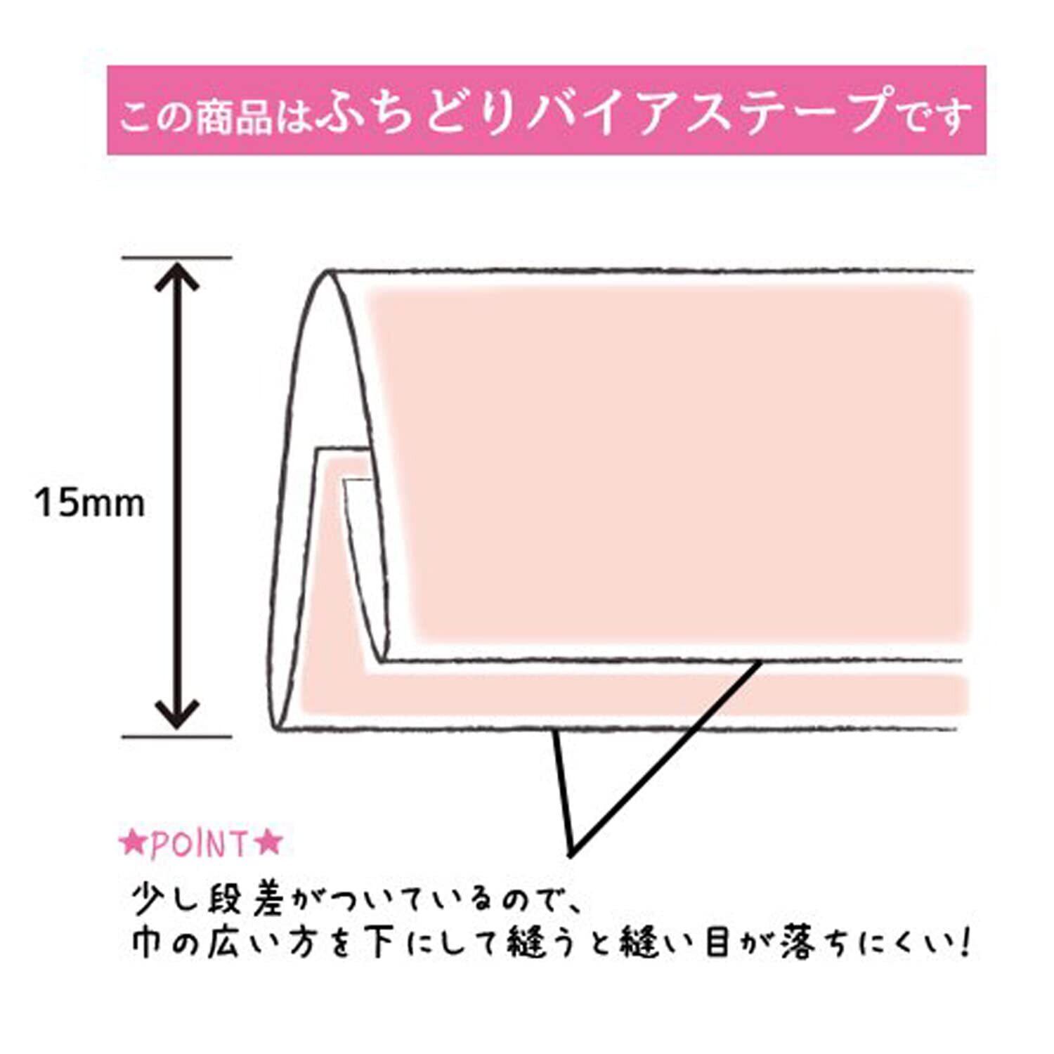肌ざわり がよくなり、 アクセント をつけるのに役立つ ふちどり バイアステープ 。ワン ステッチ で ふちどり ができるように ダブル に折ってあります。 生地 を挟み込み、 重ねて 縫う だけで簡単にふちどりができます。小さな 袋物 、 マットのふちどりに。