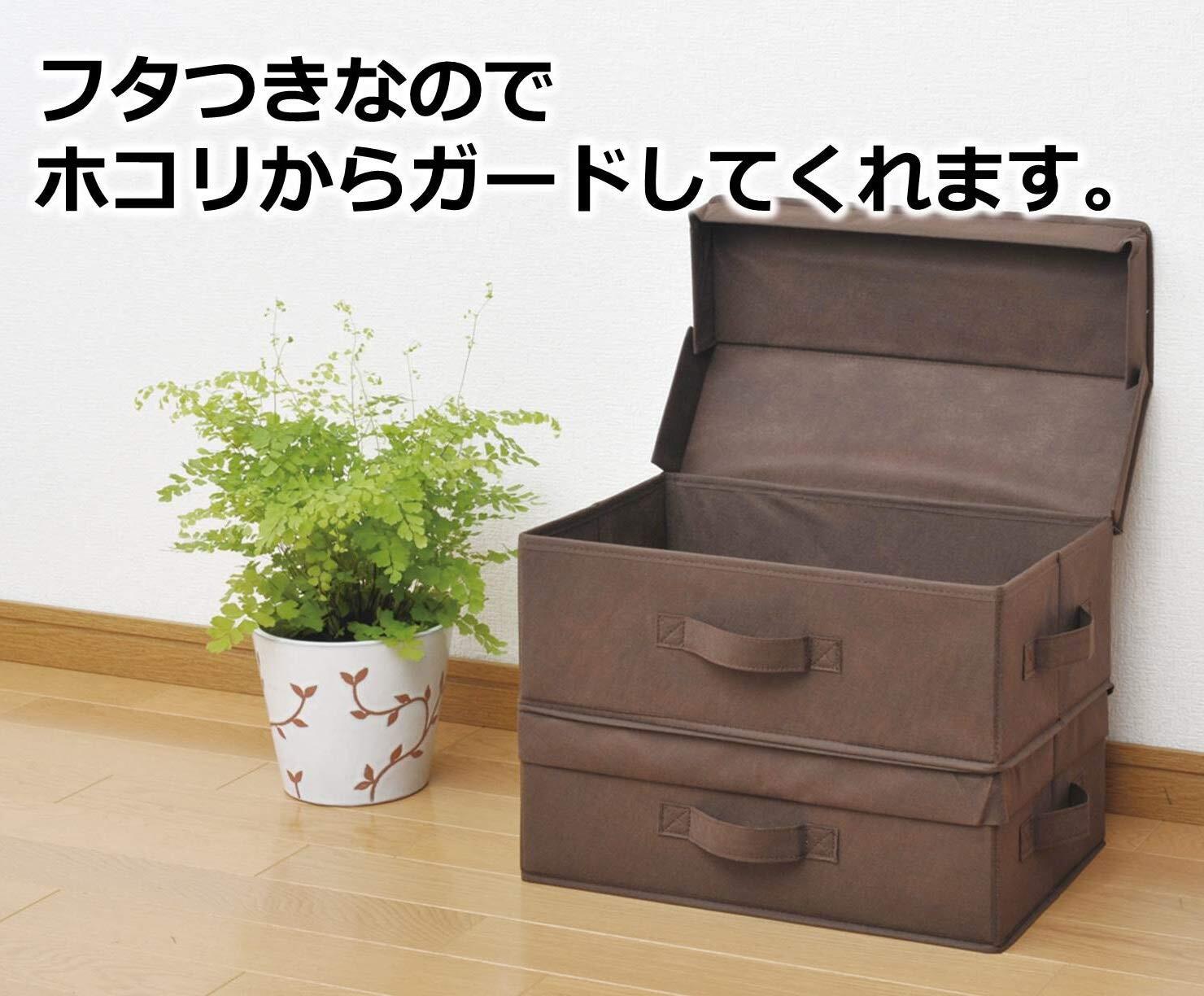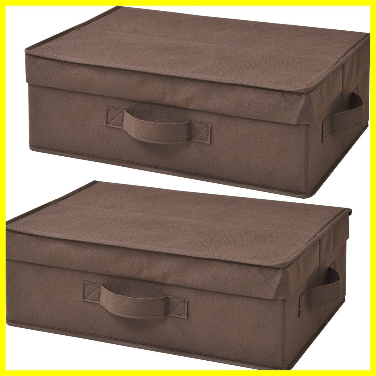 山善(YAMAZEN) どこでも収納ボックス 浅型 ふた付 2個セット ブラウン YTCF-2PAF(BR)