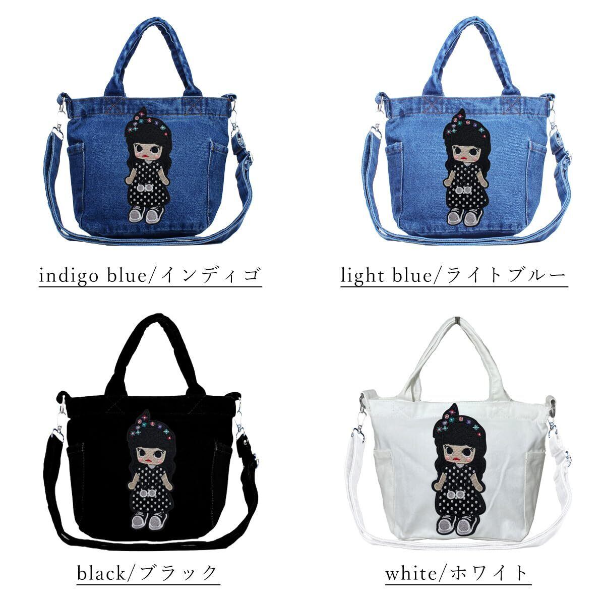 [DIVA Rose] デニムバッグ レディース ショルダーバッグ 2way小さめ 斜め掛け かわいい おしゃれ トートバッグ ドットガール デニム (ホワイト)