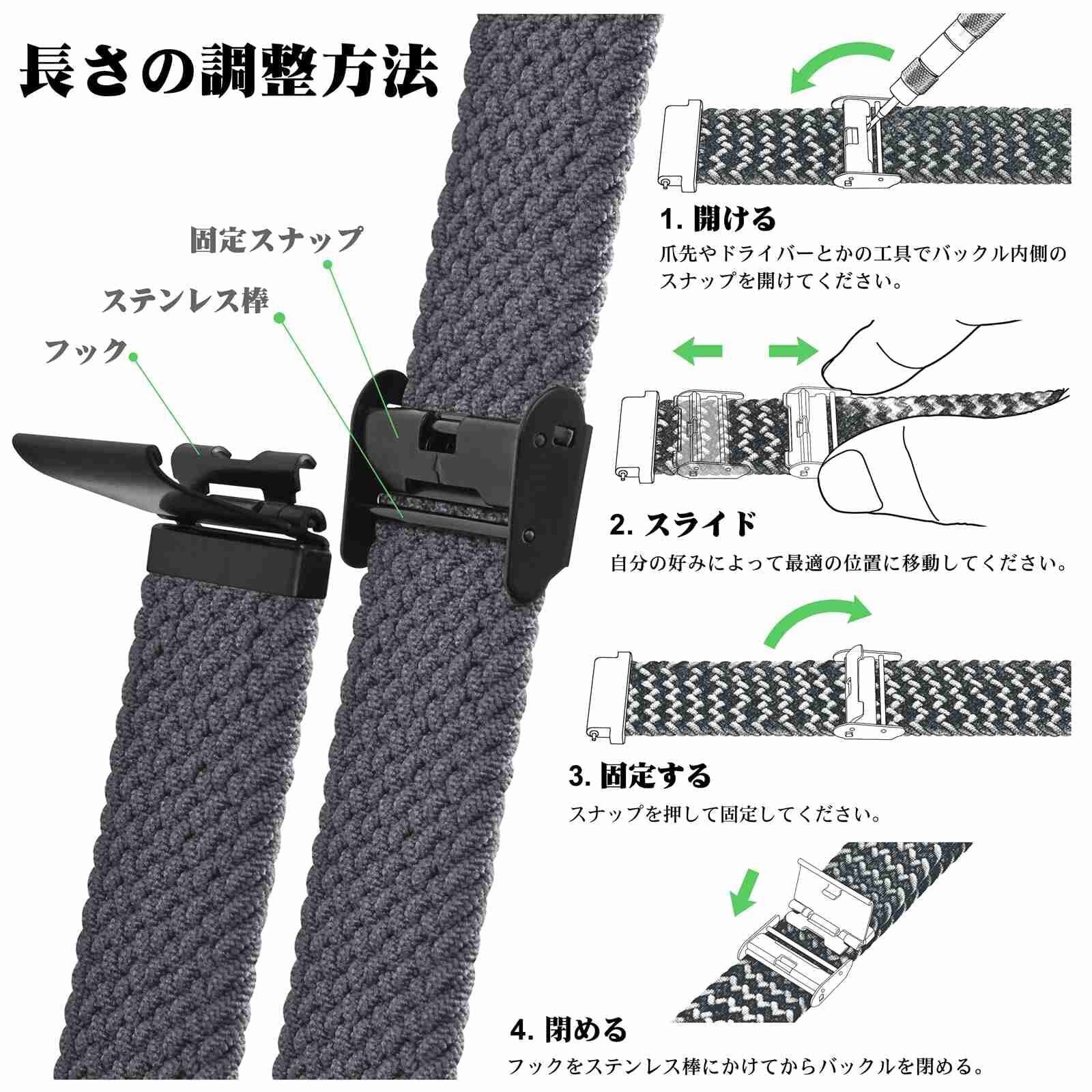 【無段階調整】手首サイズを自由に調整できるブレイデッドソロループ風時計ストラップです。バックルの位置を調整することによって緩めが好きな人もキツめが好きな人も手首サイズを自由に変えることができます。
