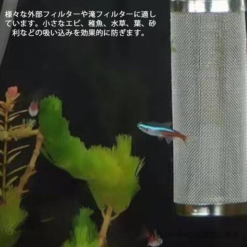 外径12mmまたは16mmの水入口パイプに対応し、様々な外部フィルターや滝フィルターに適しています。小さなエビ、稚魚、水草、葉、砂利などの吸い込みを効果的に防ぎます。