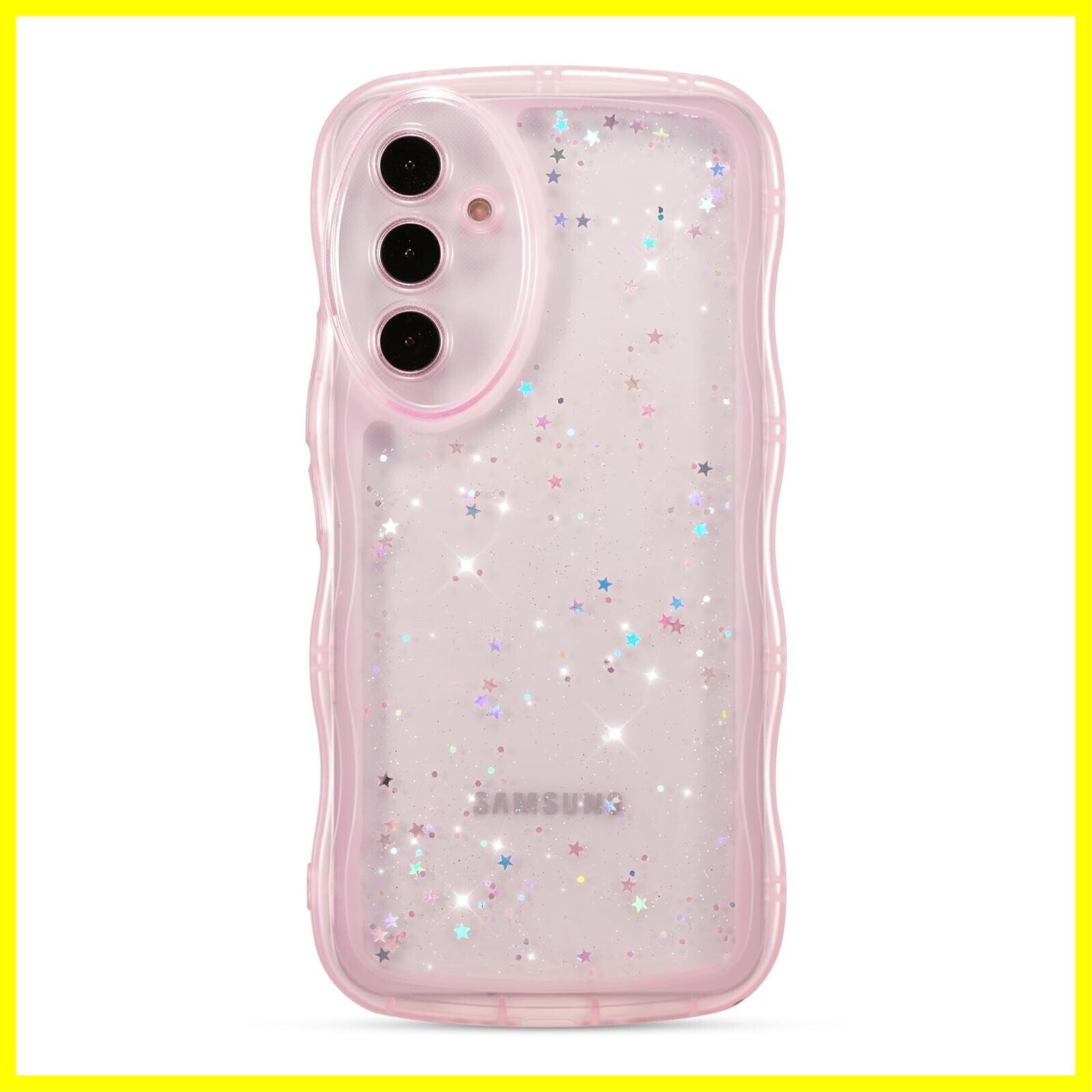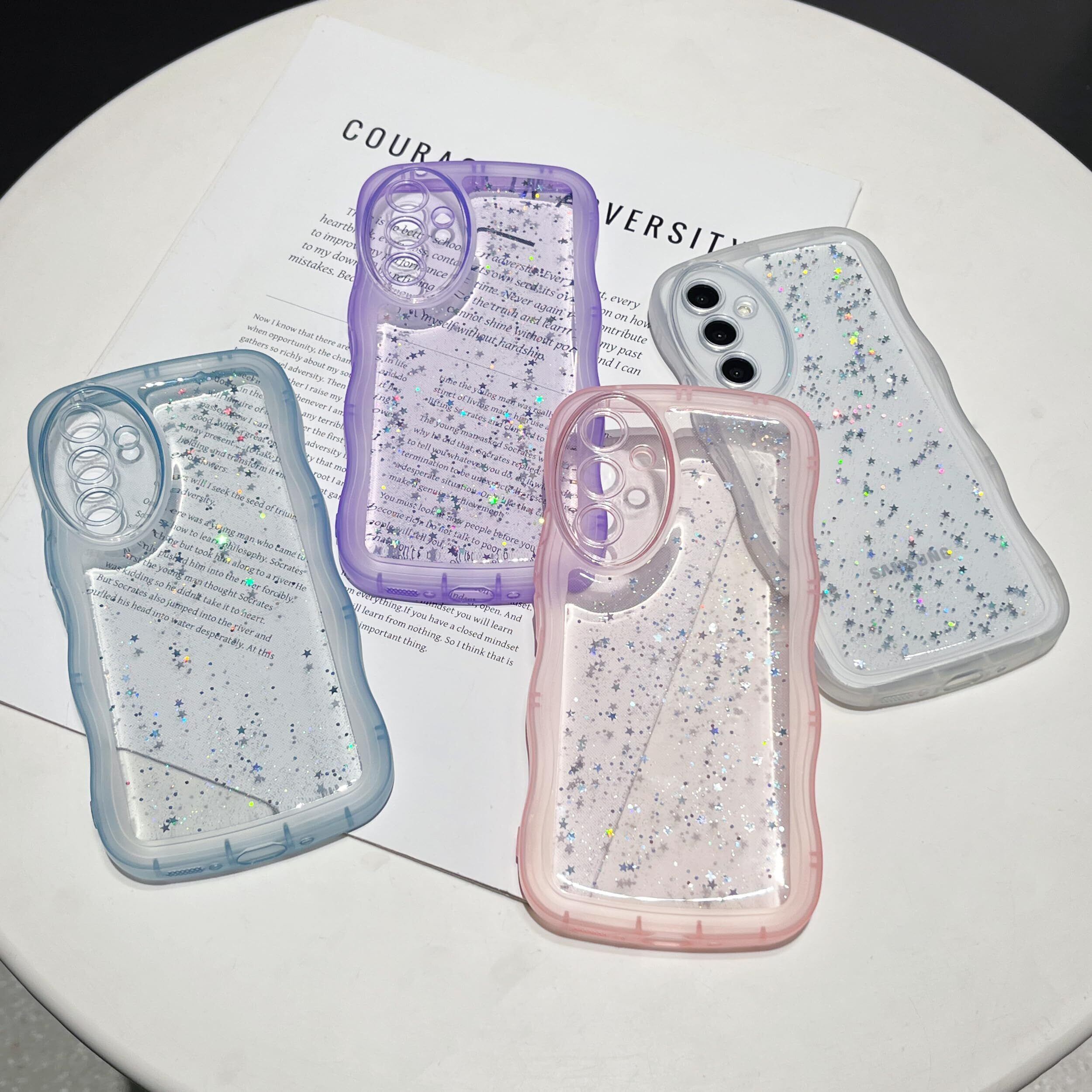 ✨【独特なデザイン】かわいいなグリッタースターデコレーションがあなたの携帯電話をより魅力的にします!波型のフレームが快適なグリップを提供。クリアな背面は、携帯電話本来の美しさを表現しています。 女の子と女性への素敵な贈り物。