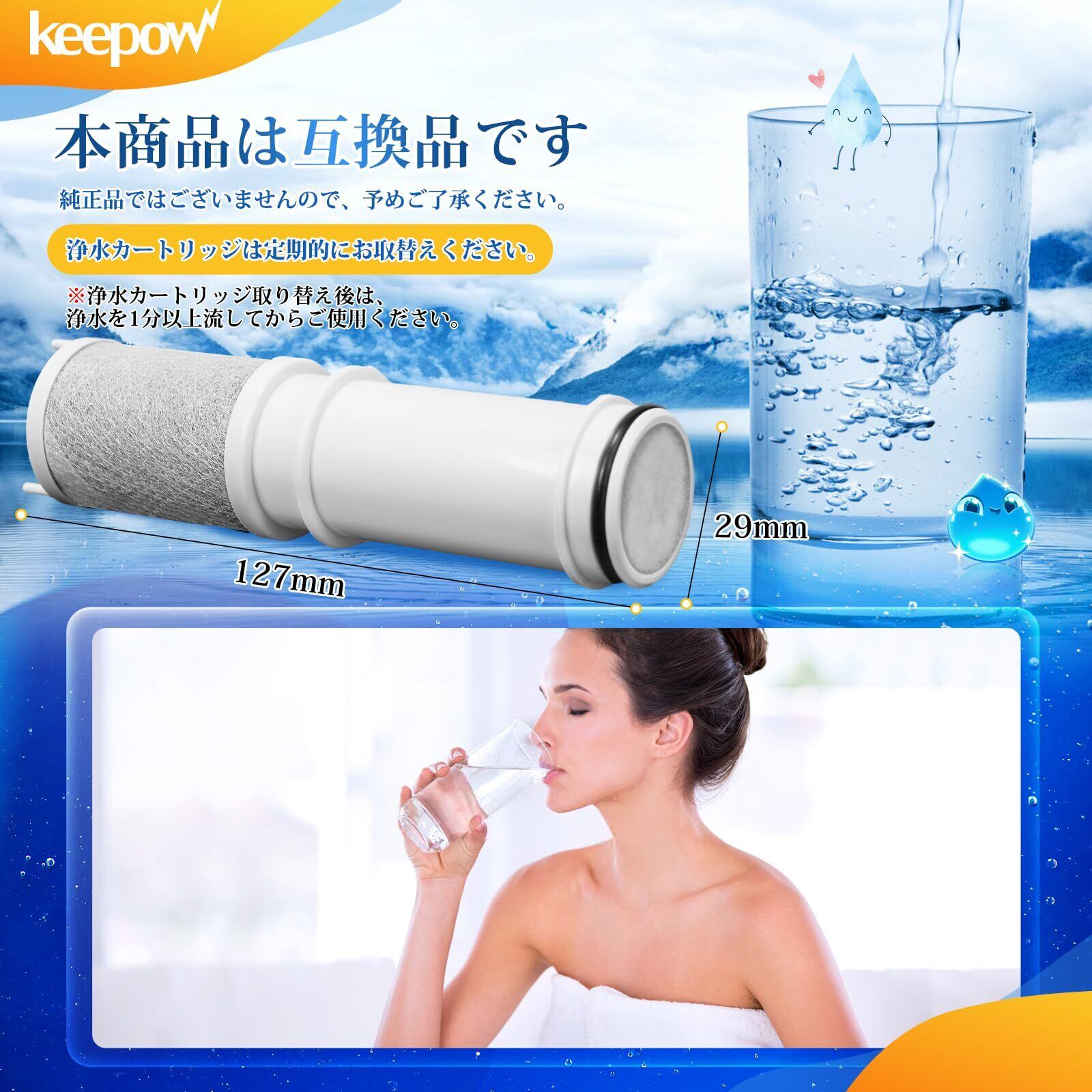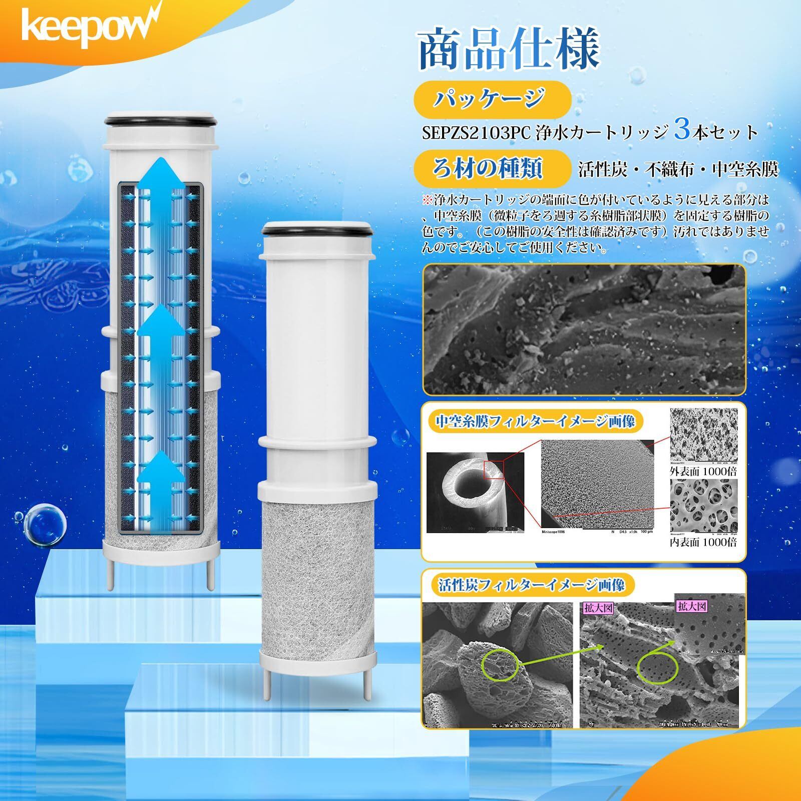 KEEPOW SEPZS2103PC 浄水器カートリッジ 3個入 浄水器兼用混合栓用カートリッジ 高性能タイプ 互換品 PZS2103PC同等 浄水器一体型シャワー混合水栓用 交換カートリッジ カチット水栓浄水器一体型シャワー 取替用浄水カートリッジ (SEPZS2103PC/3本入り)