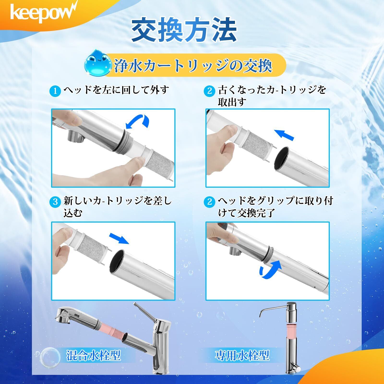 対応機種:(浄水器内蔵水栓)K1600、K1600PC、K1600Z、K1600ZPC、K1610、K1610Z、KM6001EC、KM6001ECKO、KM6001ZEC、KM6001、KM6001EPC、KM6001ZEPC、KM5001EC、KM5001ZEC、ZS202、ZS202Z