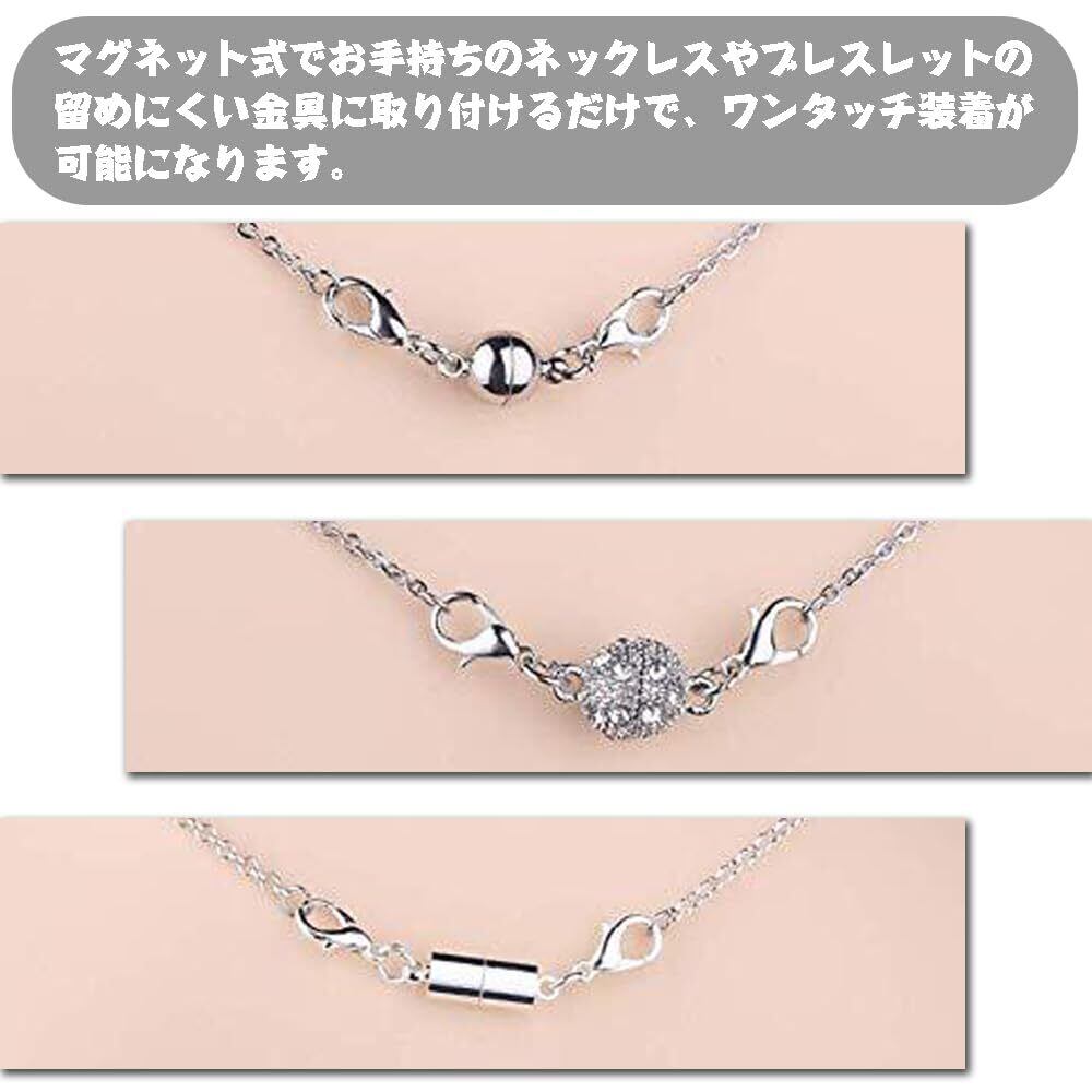 簡単装着:マグネット式でお手持ちのネックレスやブレスレットの留めにくい金具に取り付けるだけで、ワンタッチ装着が可能になります。