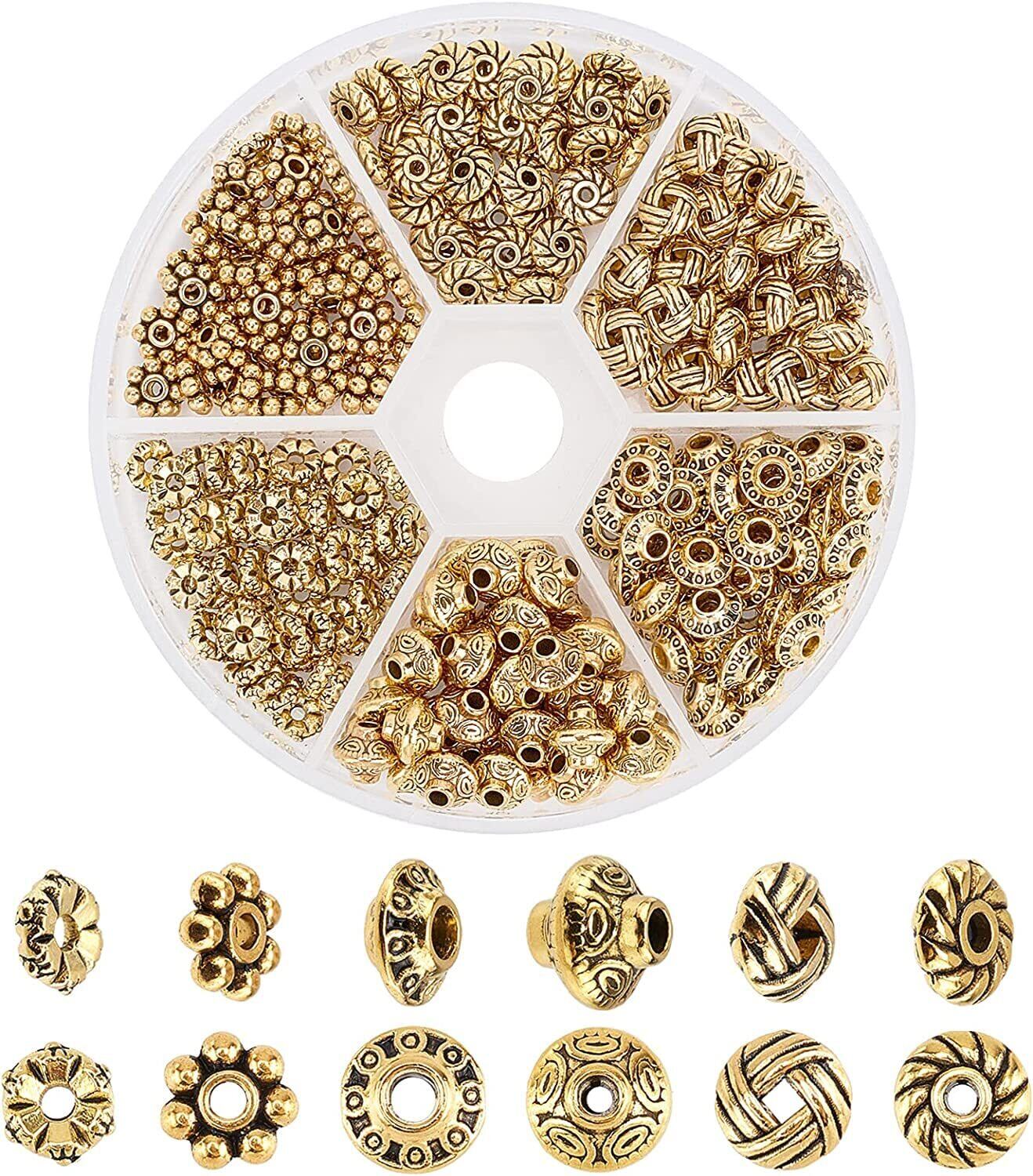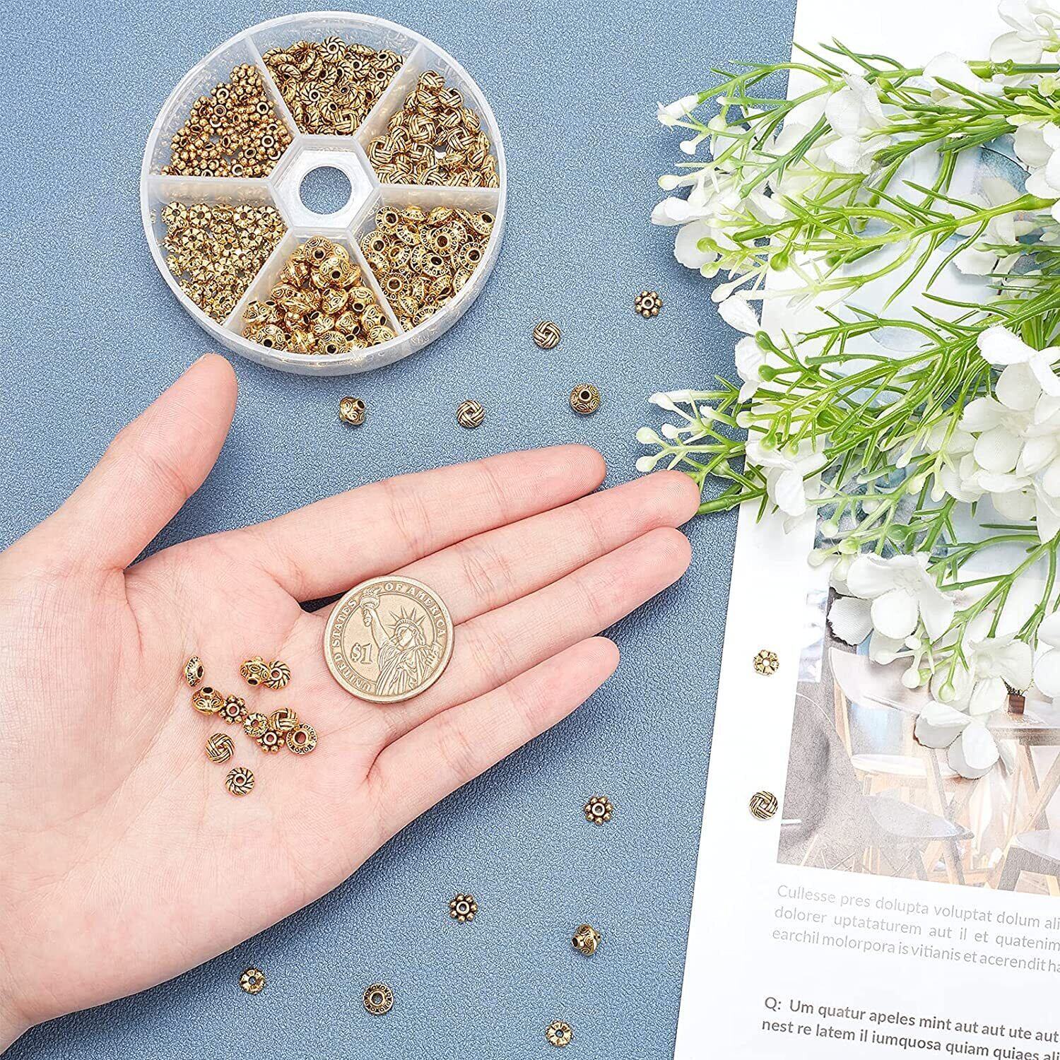PH PandaHall 約300個/箱 金色 花型 座金 ビーズキャップ 透かしキャップ フラワー チャーム 菊座 花座 スペーサービーズ アクセサリーパーツ チベット ロンデル 花状 レジン封入 ジュエリー用 アンティーク