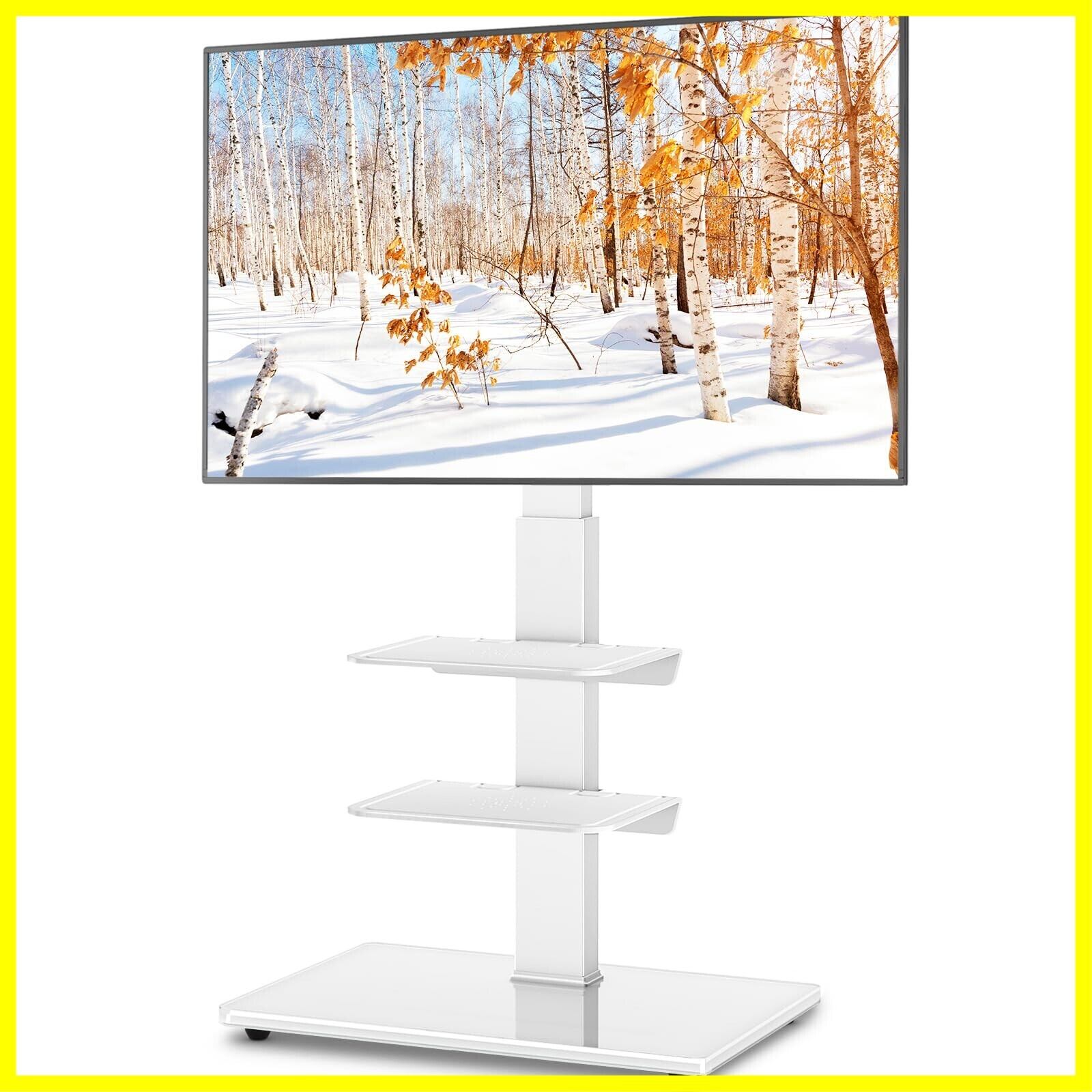 Rfiver テレビスタンド tvスタンド テレビスタンドロータイプ 32-70インチ対応 3段 高さ調整可能 ラック左右回転30° 強化ガラス 耐荷重50 KG ホワイト 家用 展示用