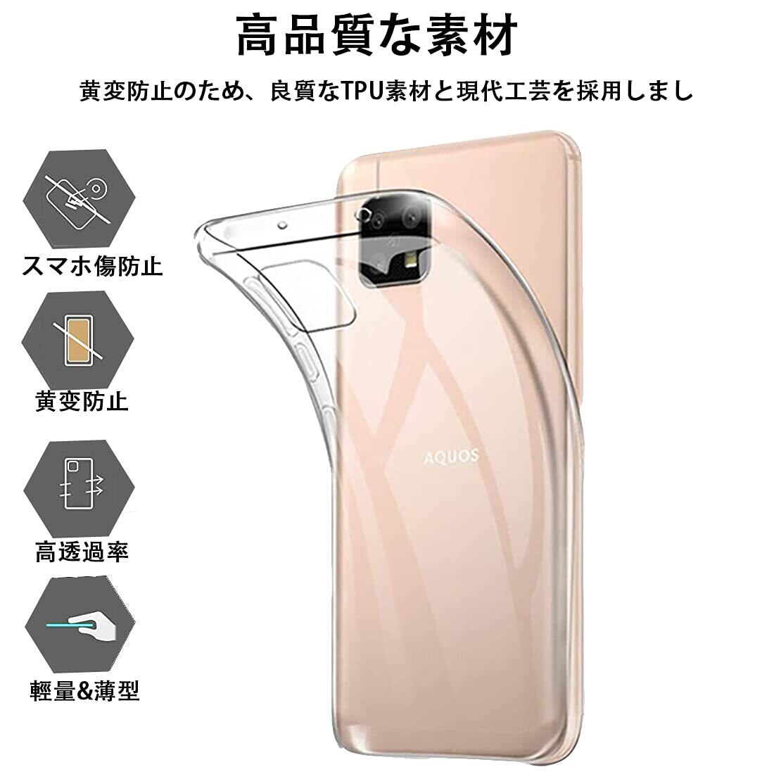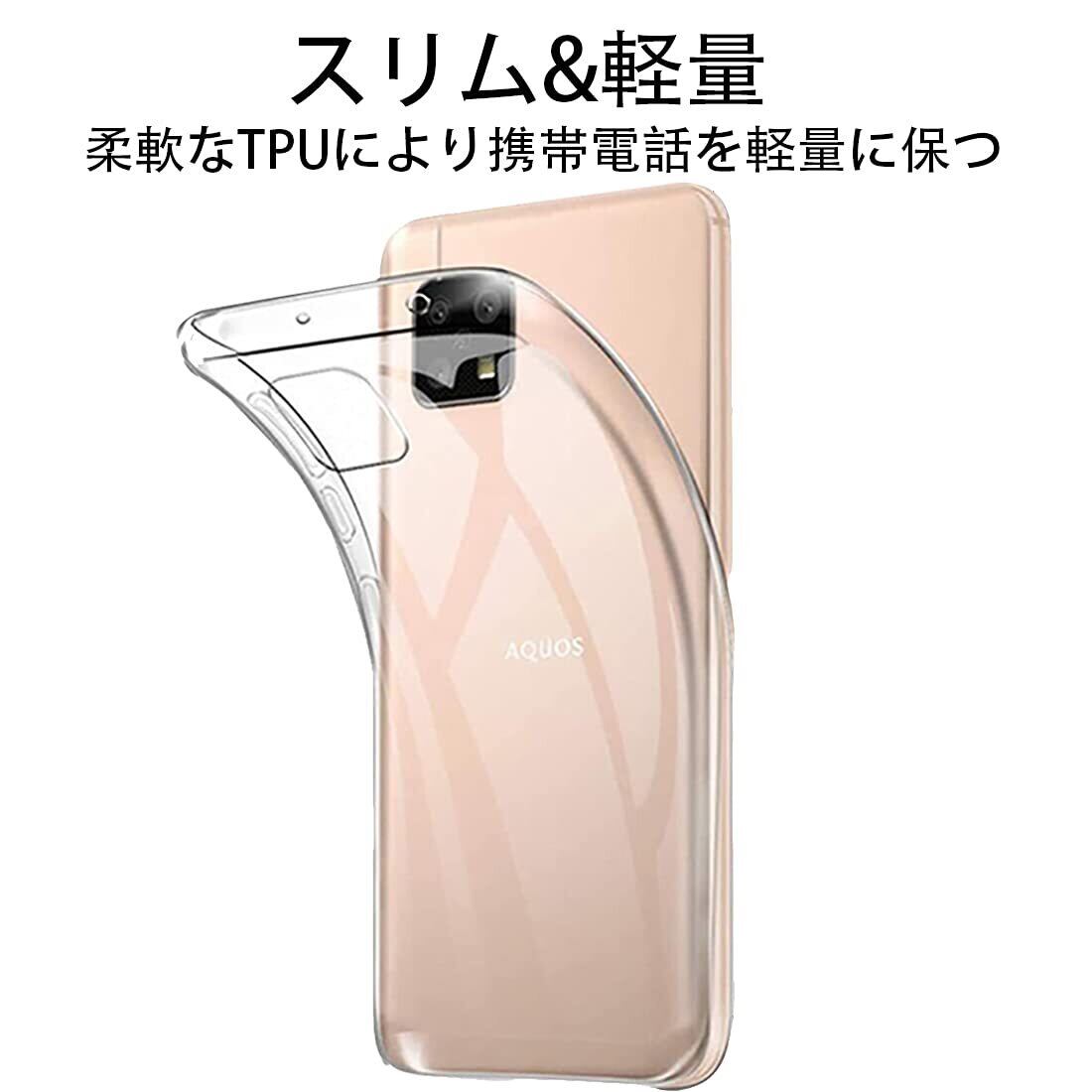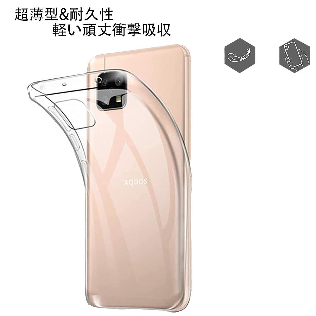 【対応機種】: FOR AQUOS sense4-sense5G 用の 透明保護 ソフト シリコンケース。