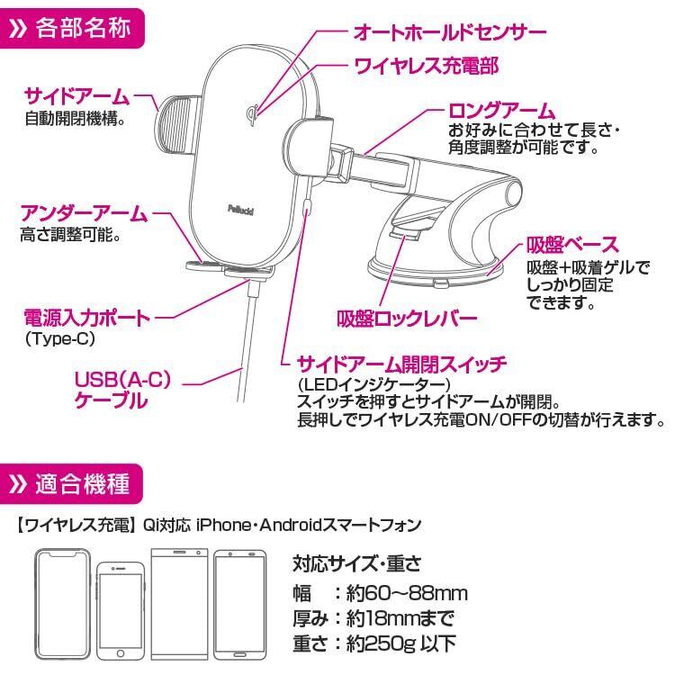 ペルシード(Pellucid) 車内用品 スマホホルダー 自動開閉ロングアーム 吸盤貼付けタイプ PPH2308
