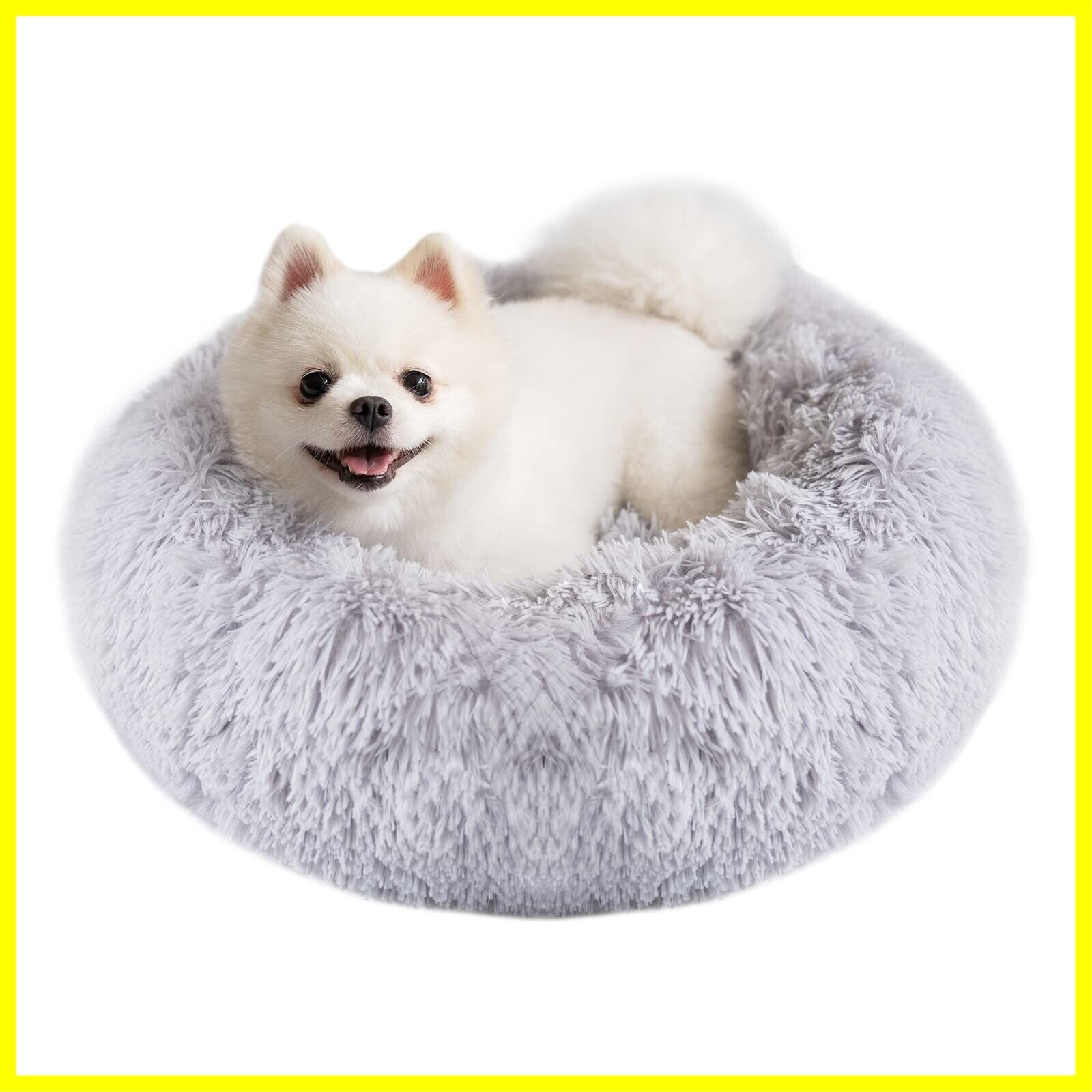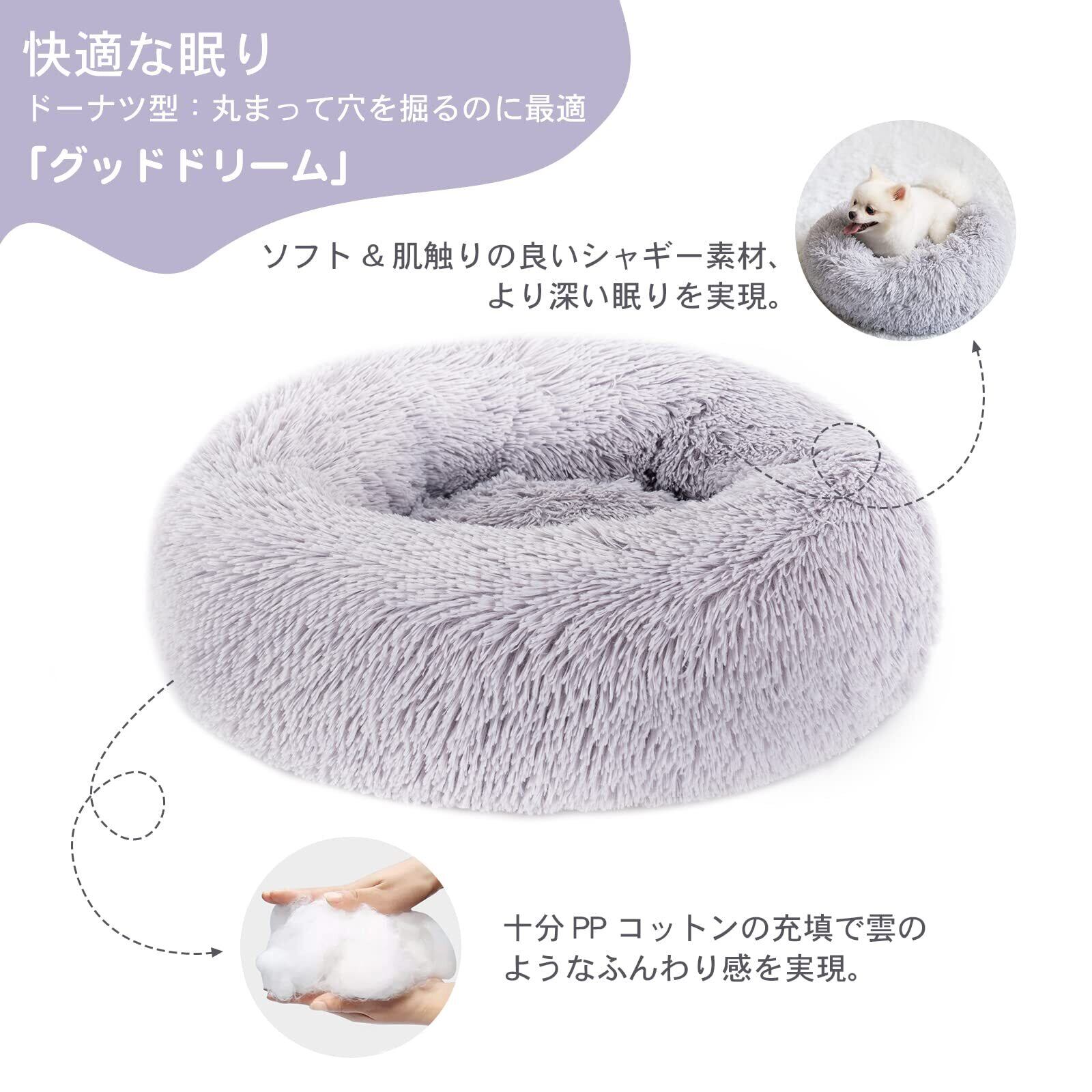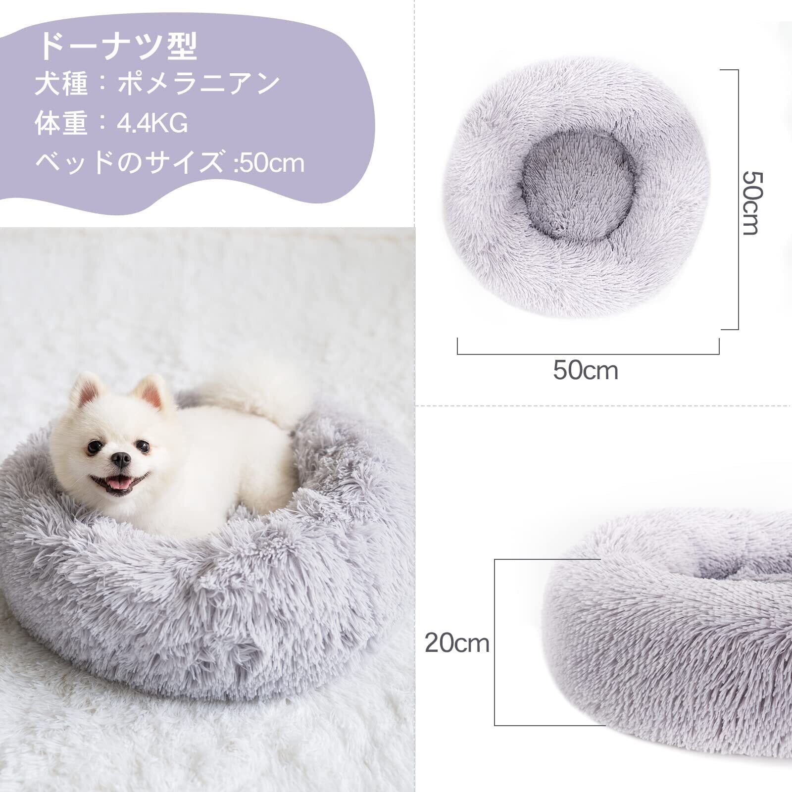 猫 ベッド 犬ベッド ふわふわ ラウンド型 ペットクッション 通年 滑り止め 防寒 暖かい 洗濯可能 子犬 猫用 サイズ選択可 カラー選択可 (50cm, ライトグレー/取り外し可能)