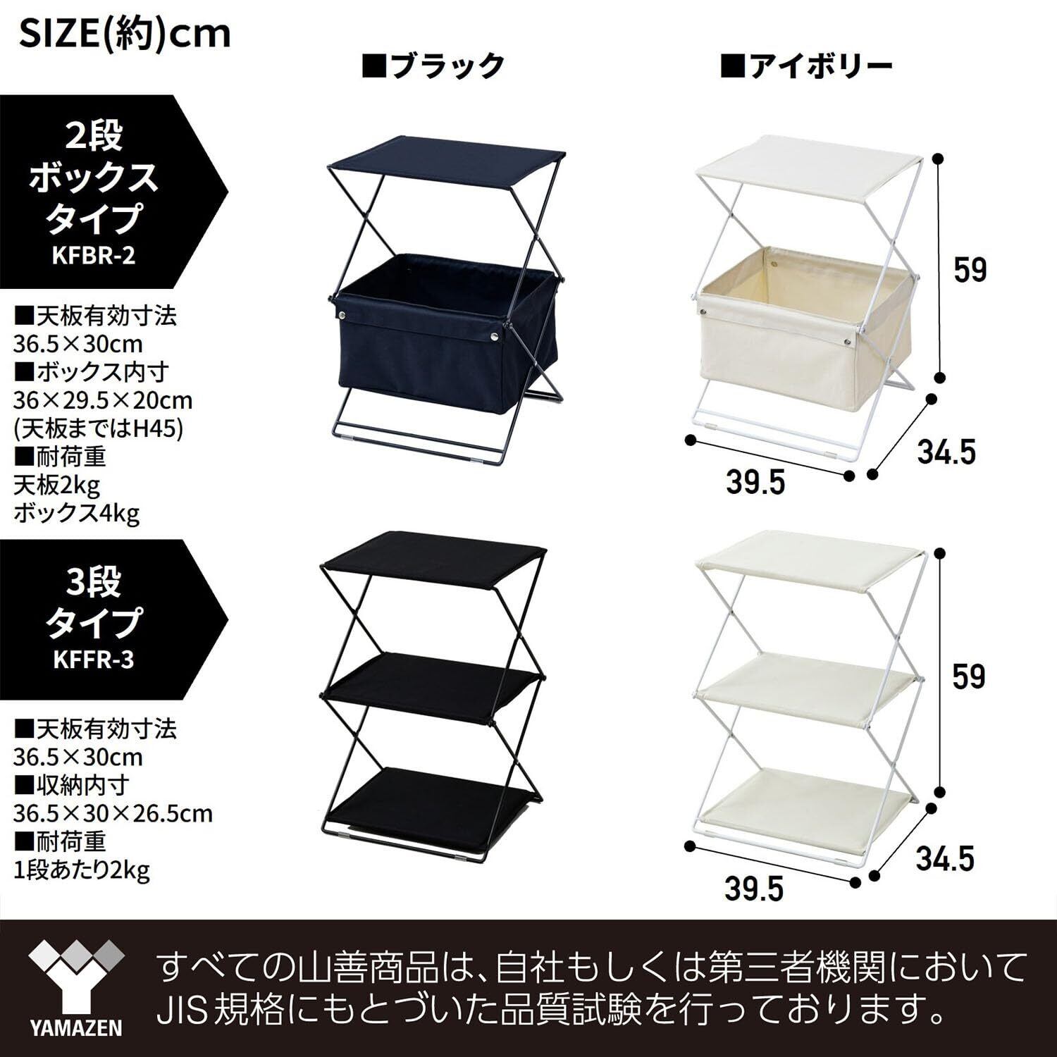 山善(YAMAZEN) ラック 収納ボックス 折りたたみ 2段 幅39.5×奥行34.5×高さ59cm ファブリック生地 かんたん組立 おしゃれ 棚 ブラック KFBR-2(BK) 一人暮らし