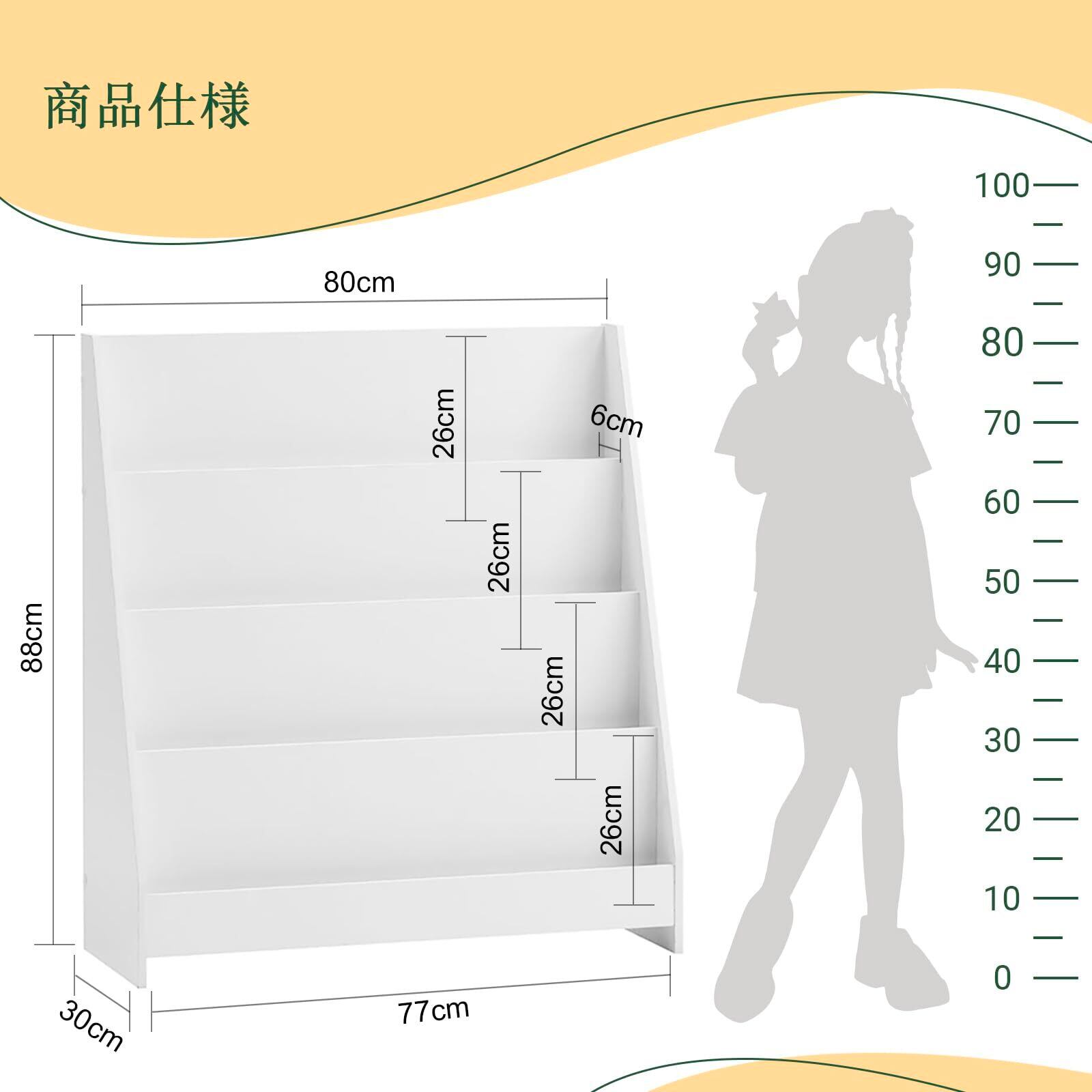 SoBuy 絵本ラック 本棚 絵本棚 子供用本棚 マンガ 雑誌収納 かわいい 絵本だな 白い 幅80×奥行き30×高さ88cm 子供用シェルフ キッズ 絵本収納 おしゃれ 子供部屋 子ども用家具 (KMB32-W/ホワイト)