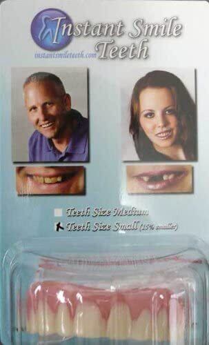 全米で大ヒット中! 歯並びや欠けが気になる方に朗報です。このインスタントスマイルを使えばスグに素敵な笑顔を取り戻す事ができます。脱着はワンタッチで行えますのでいつでもどこでも気軽に使用出来ます。本体をお湯で柔らかくしてご自身の前歯のカーブに合わせてフィッティング後、冷え固めます。次に付属のフィッティングビーズ(軟質樹脂製の取付け用具材)をお湯で粘土状にしてティース本体に取り付けてご自身の歯にあてがって型取りします。ゆっくりと外して冷え固まればご使用開始となります。フィッティングはリセット可能ですのでやり直し出来ます。面接に、デートに、旅行に! インスタントスマイルはあなたに自信と笑顔を提供いたします。安全検査に合格済みの製品です。こちらは女性、顎の小さめの男性向きです。※八重歯や前歯が大きく傾斜している場合、適合が難しい場合があります。
