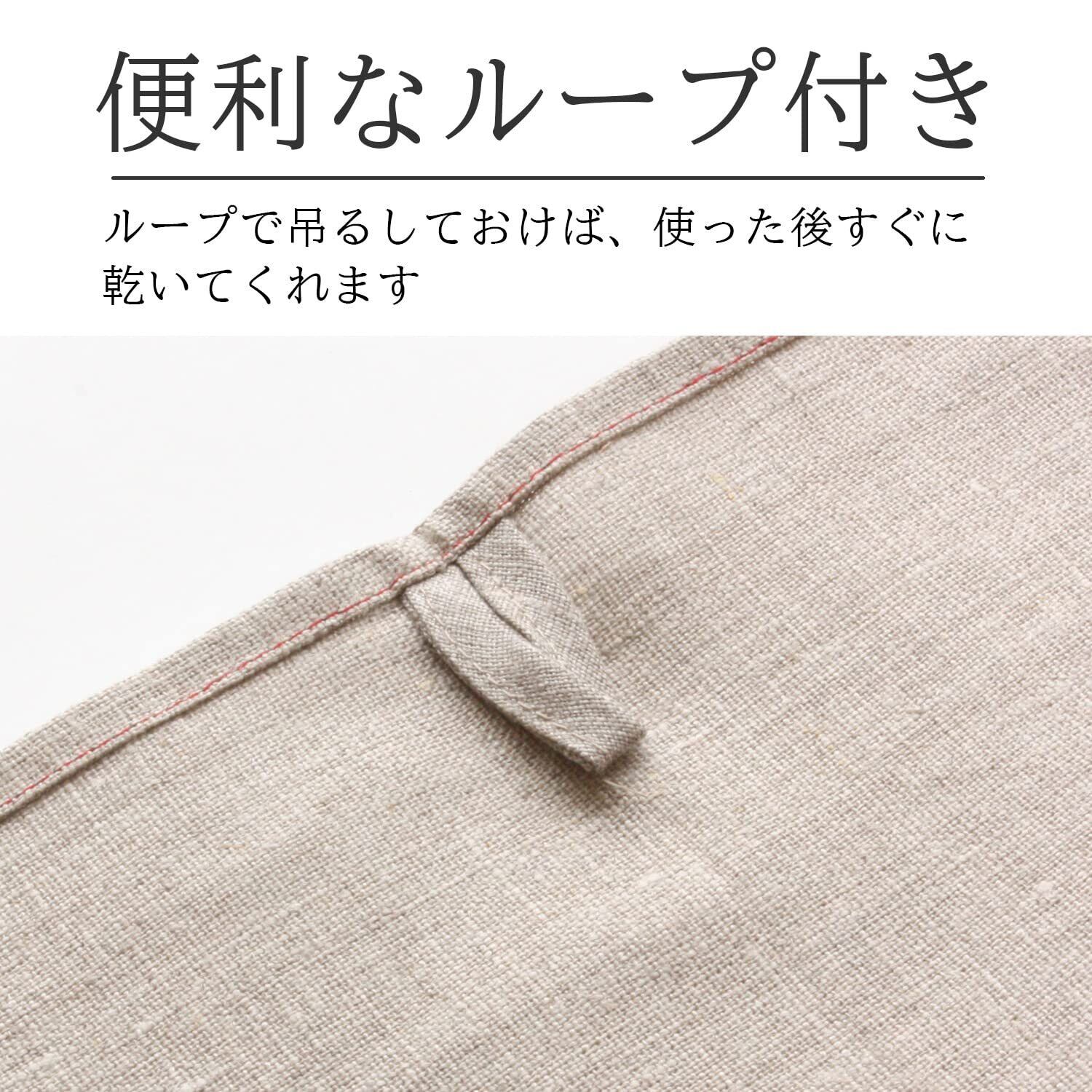 【リネン100%。吸水速乾で素早くしっかり拭き取れる】リネンはコットンに比べて吸水性率は約4倍、速乾性は約2倍といわれています。たくさんの食器でもクロスを軽く当てるだけで、素早くしっかりと拭くことができ、ループで吊るしておけば使った後すぐに乾いてくれます。