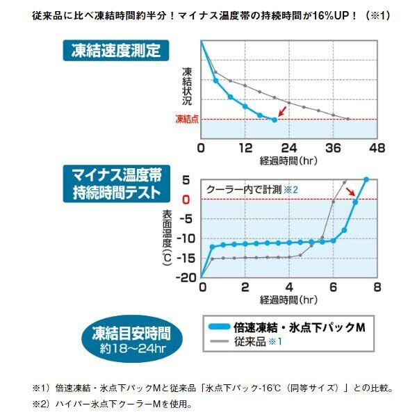 スピード凍結を実現。従来の氷点下パック-16℃の約半分の時間で凍結完了。
