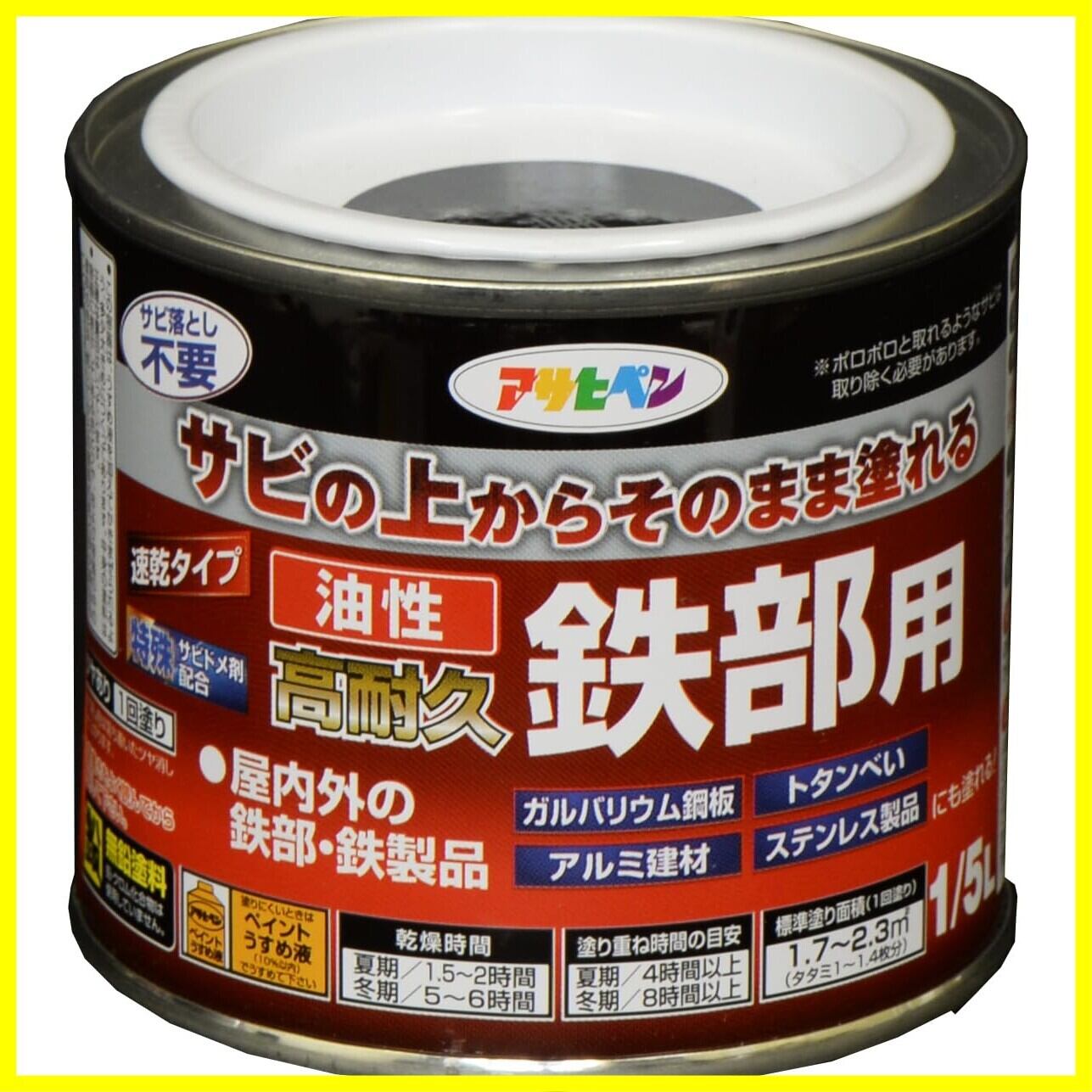 アサヒペン 塗料 ペンキ 油性高耐久鉄部用 1/5L 黒 油性 サビの上からそのまま塗れる ツヤあり 1回塗り 高密着性 耐候性 日本製