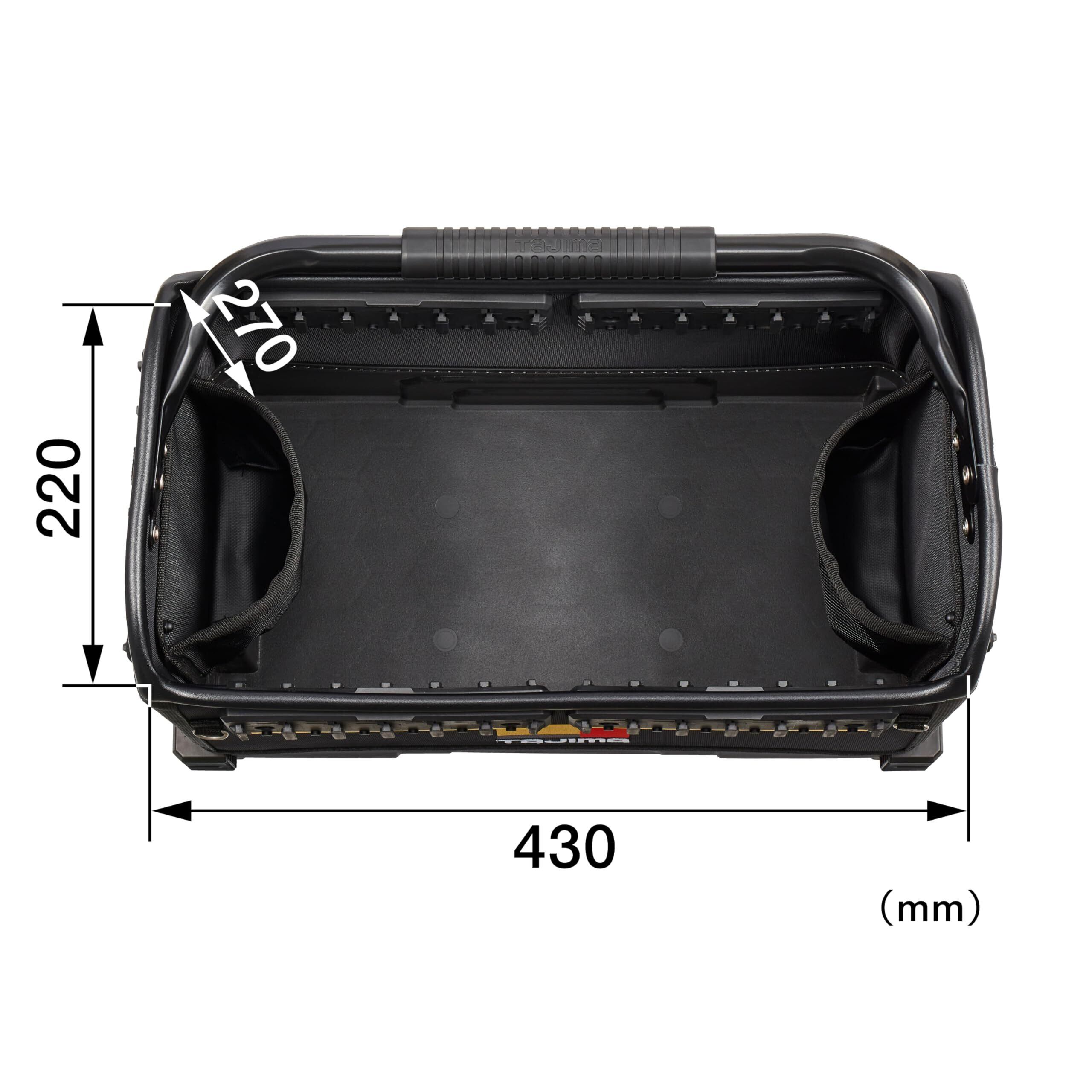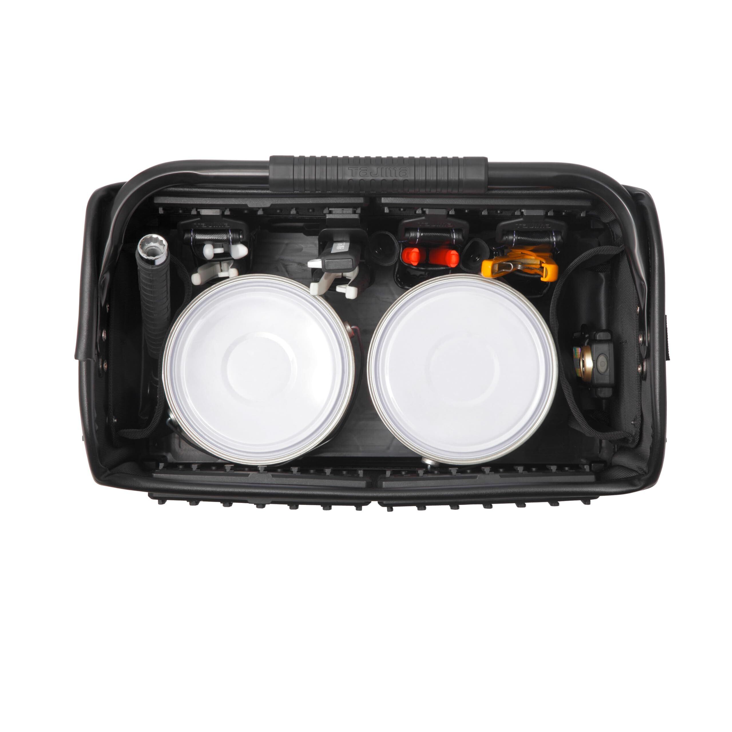 タジマ セフシステム セフツールバッグ TB-TBAG オープン型布製ツールバッグ 最大積載量20kg 収納時に邪魔にならない可動式大型ハンドル 内・外側にセフホルダー機能54個 高強度ポリマー材底面+型崩れしにくい剛性設計 重ねて置くだけで連結する荷崩れ防止仕様 セフ台車との連結も可能 ショルダーベルト付