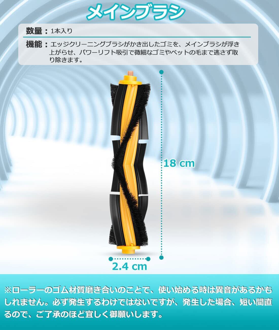 【パッケージ内容】 ロボット掃除機 用 ダストフィルター ×3、紙パック×3、サイドブラシ×3セット、メインブラシ×1、お手入れ用ブラシ×1個、日本語取扱説明書×1