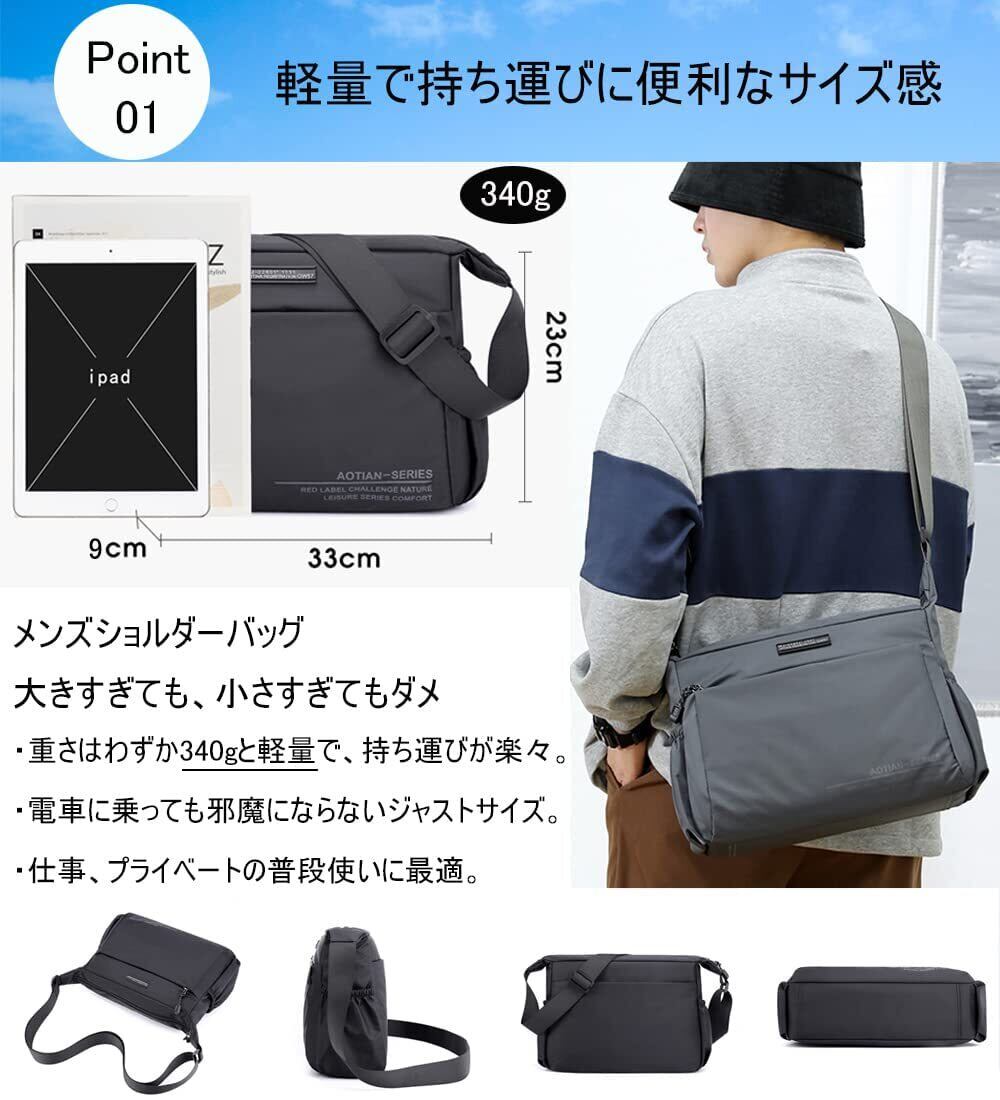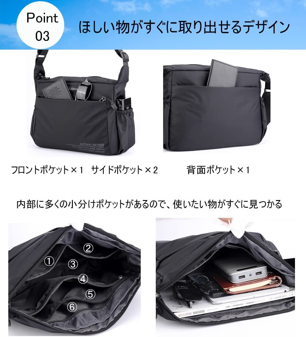 [zhongningyifeng] ショルダーバッグ メンズ 斜めがけ 大容量 軽量 かばん 撥水 ナイロン ワンショルダー (black)