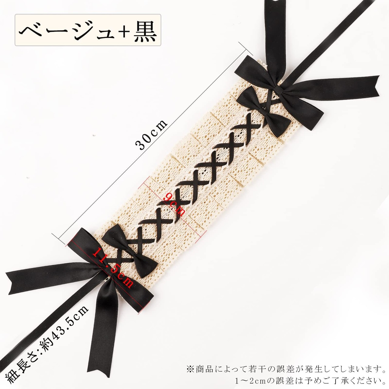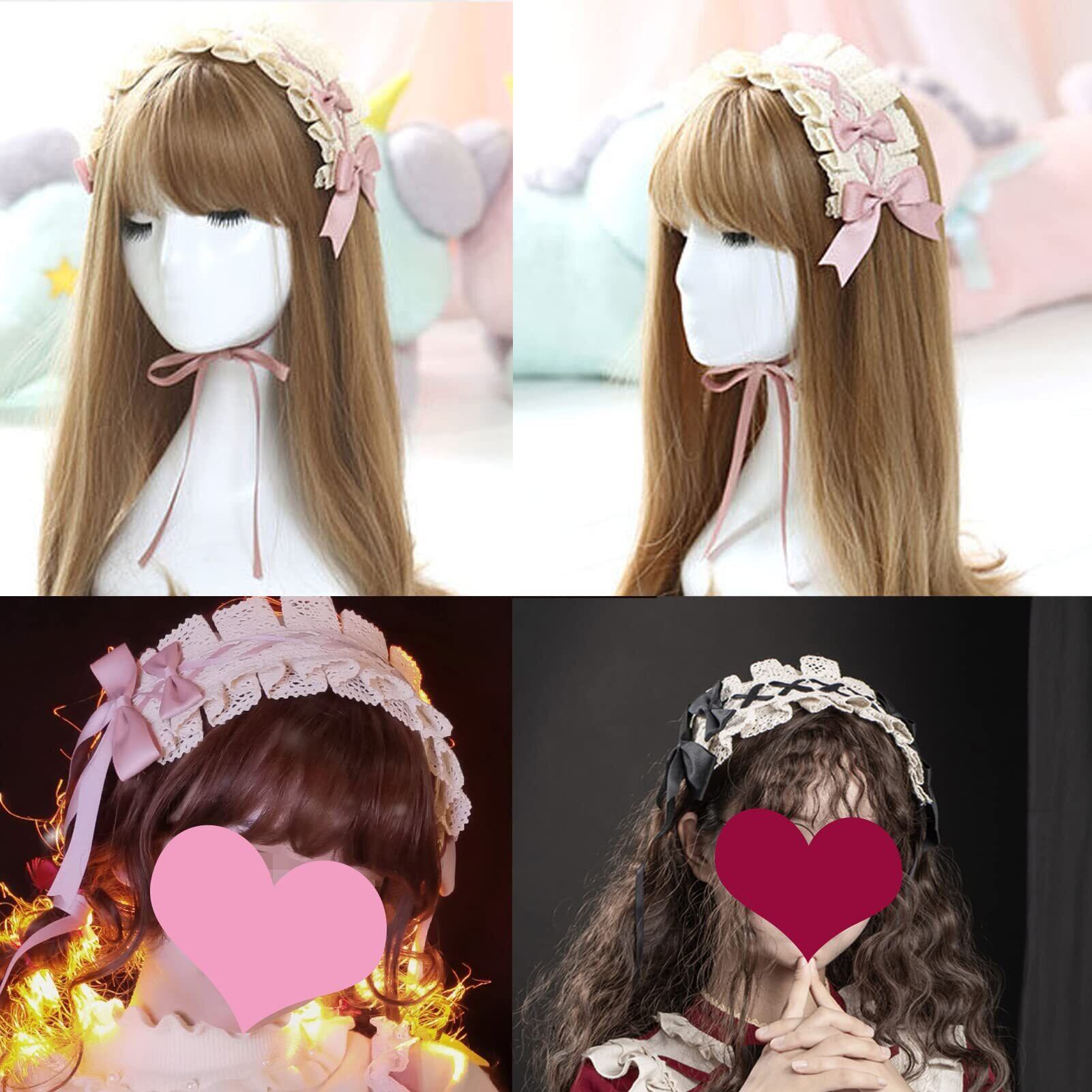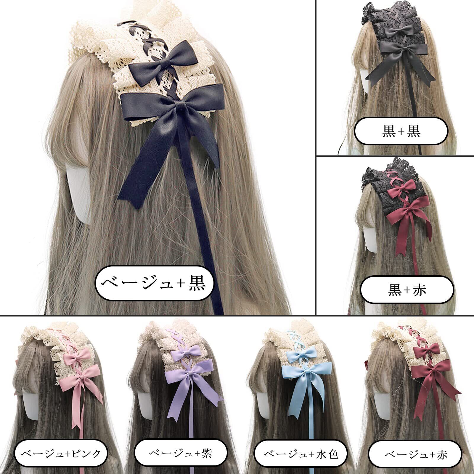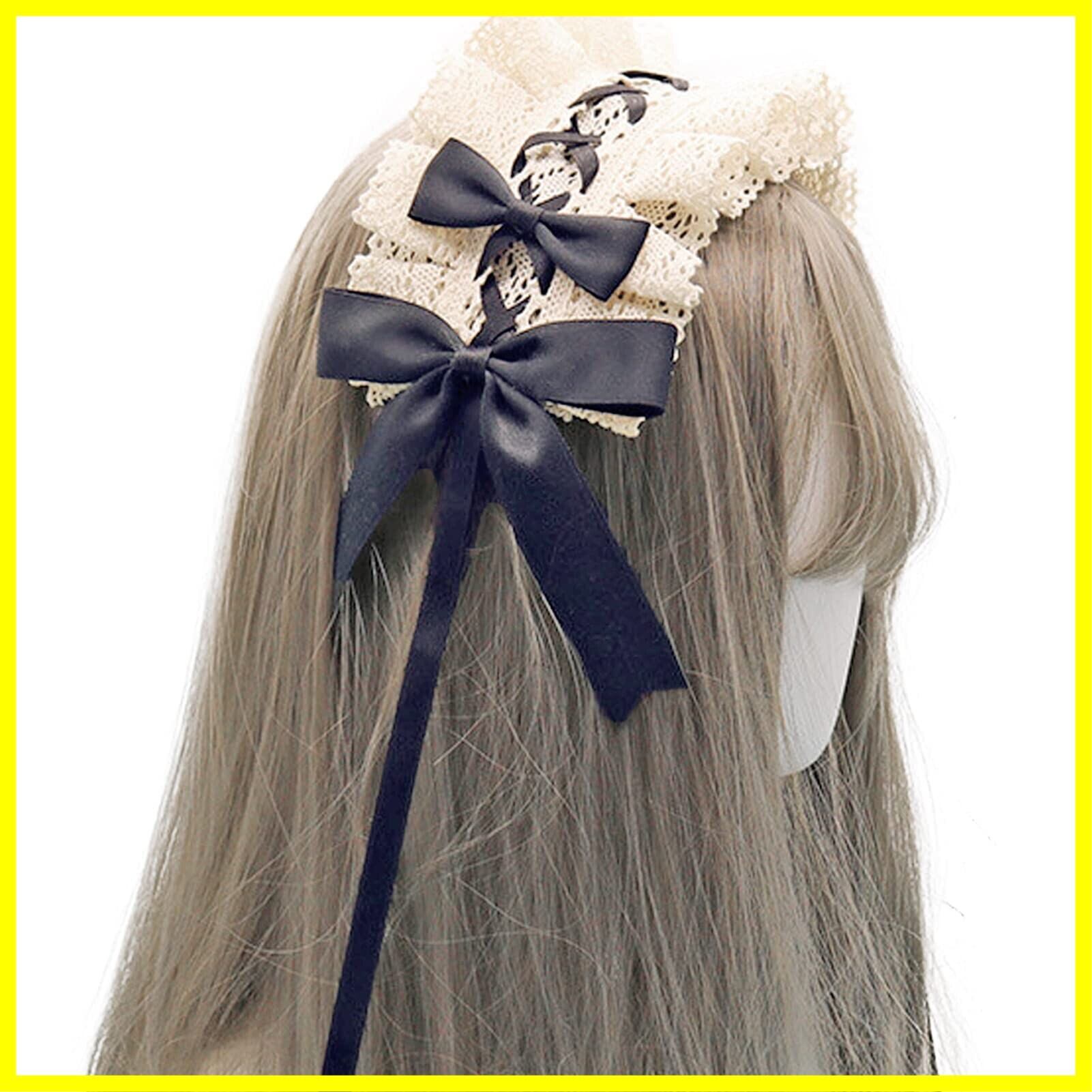 ヘッドドレス ロリータ 髪飾り ゴスロリ ヘアアクセサリー カチューシャ レース リボン 蝶結び かわいい キュート メイドカフェ lolita 多色選択 (ベージュ+黒)