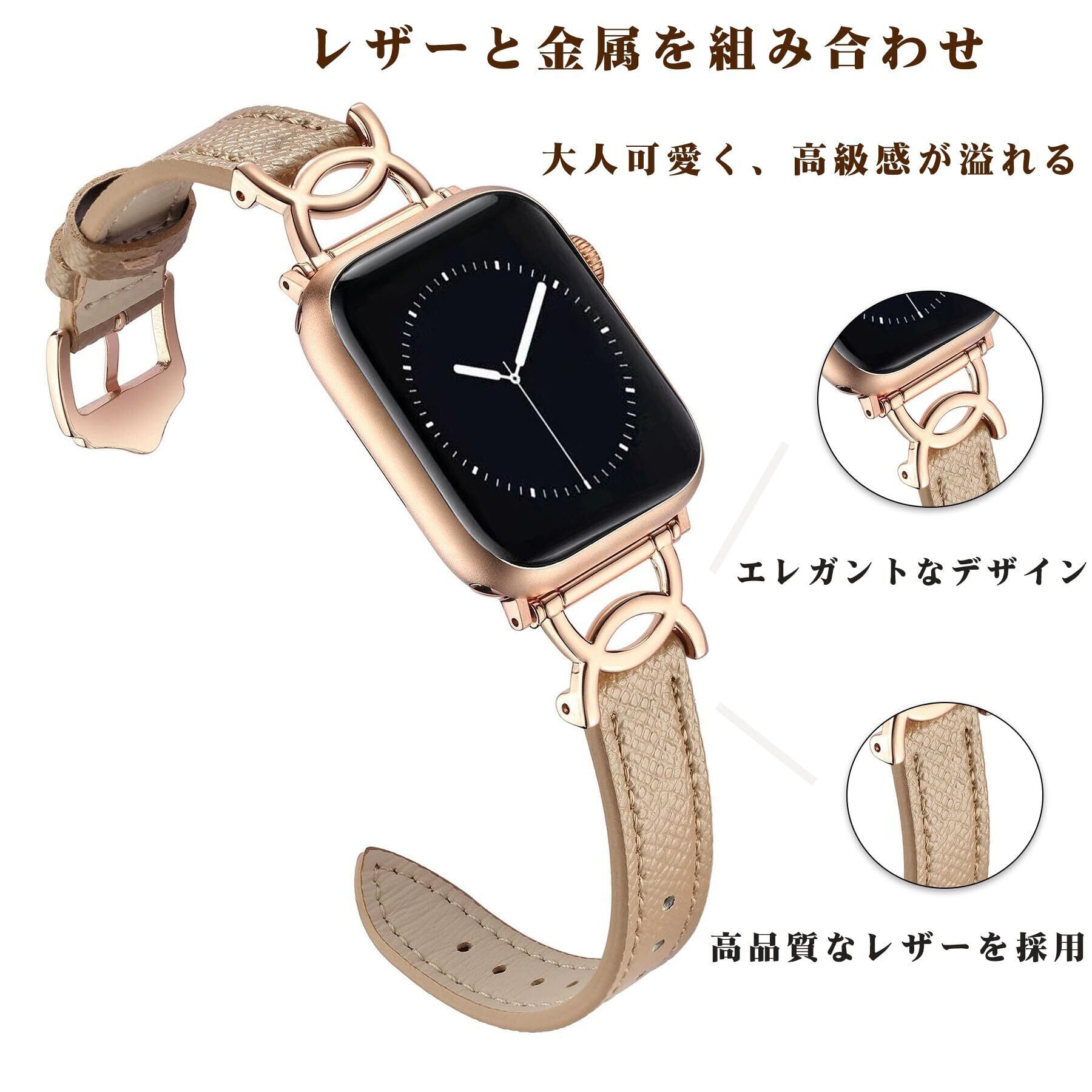 【新しいデザイン】このアップルウォッチ用のバンドは高級感のあるレザーとローズゴールドの金属を組み合わせが大人可愛く、どんなコーディネートにもお使いいただけます。シンプルながらもユニークで知的なデザインはオフィスシーンにもおすすめです。