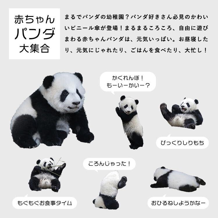 ころころの赤ちゃんパンダがいっぱいで思わず笑顔になってしまいそう!大きめ60㎝のサイズで雨の日も安心、自分用はもちろんパンダ好きの方へのプレゼントにもおすすめです。 ワンタッチで開けるジャンプ式です。
