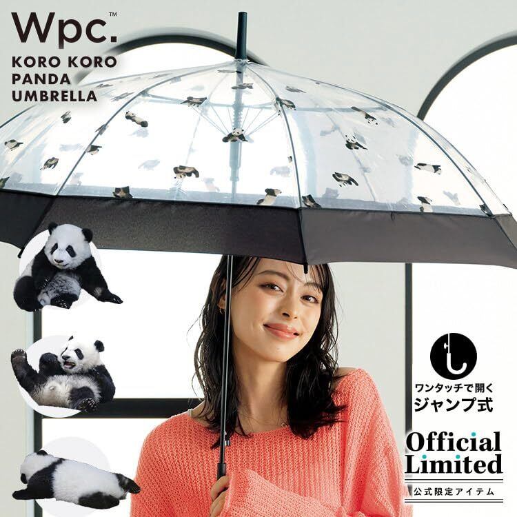 Wpc. 雨傘 [ビニール傘] ころころパンダアンブレラ チャコール 長傘 60cm 長く使える レディース 大きい 通勤 通学 フォトジェニック インスタ 映え 動物 写真 癒し系 丈夫 透明 おしゃれ 可愛い 女性 PT-PD01