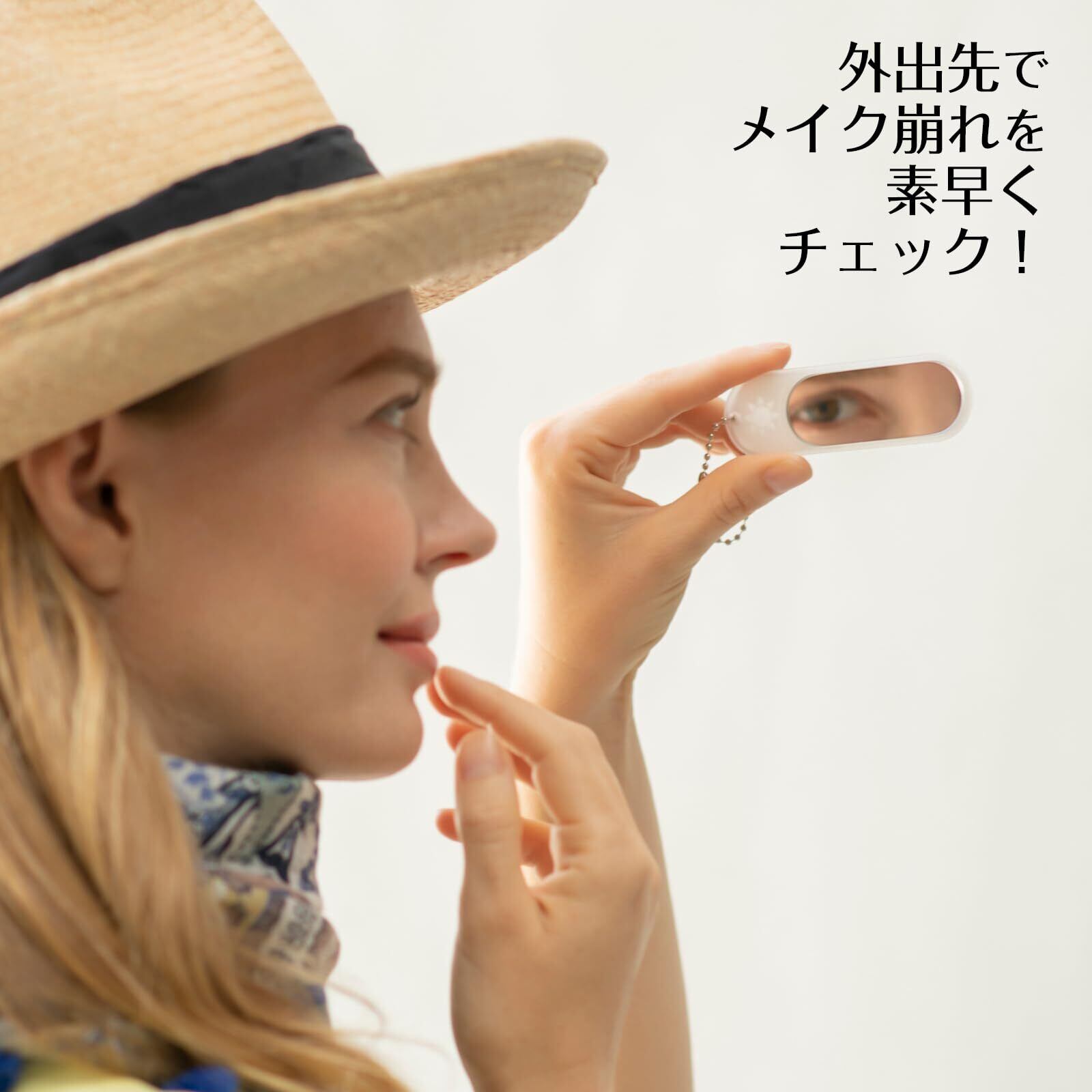 【コンパクトミラー】普段はコンパクトミラーとしてご使用できます。ポーチやバッグに入れて持ち運びに便利なコンパクトサイズですので、外出先でさっと取り出しメイクのチェックが出来ます。ポールチェーンが付いていますのでバッグなどにも取り付けられます。全体サイズ:約28mm x90mm x 3mm 重量:約10g (ケース付き)