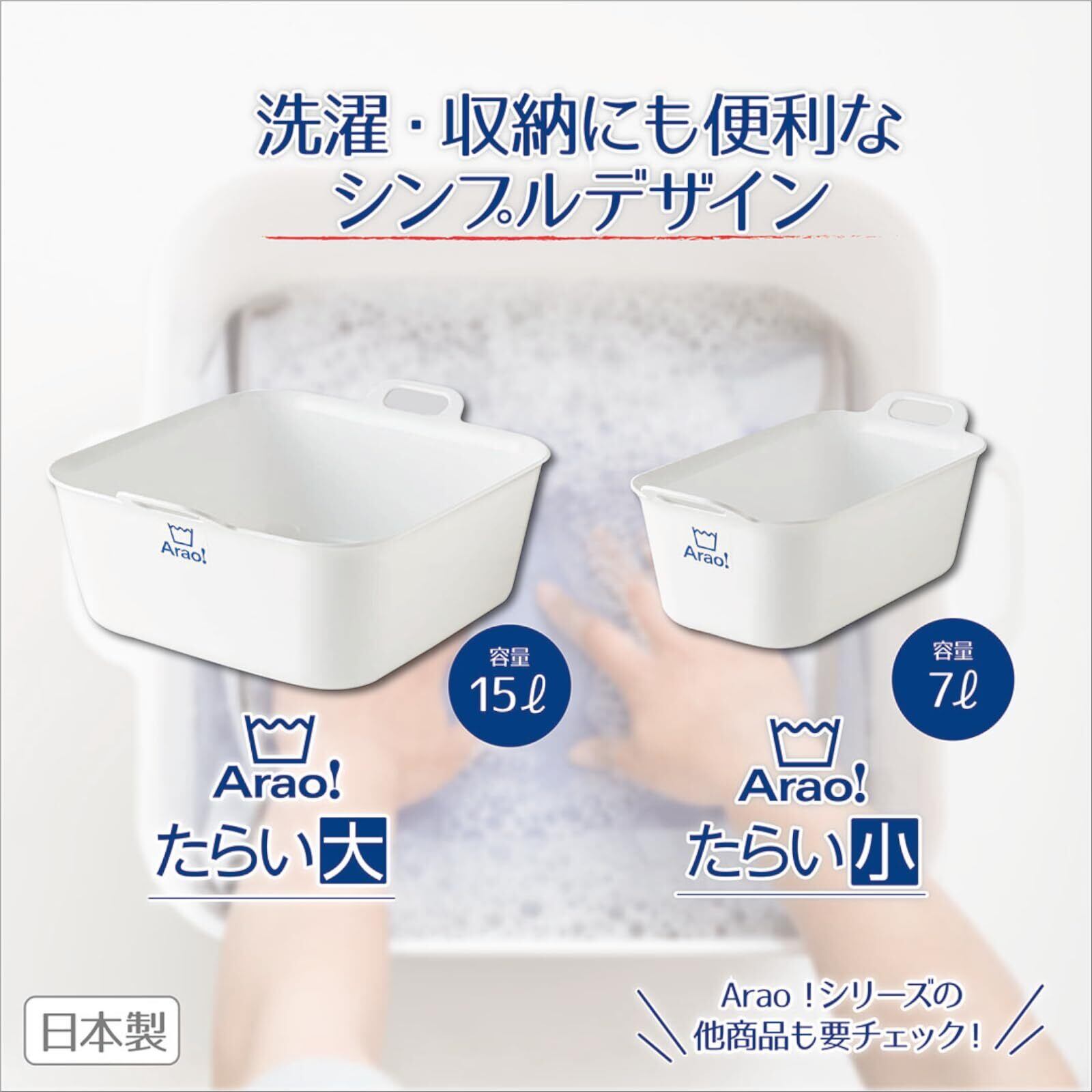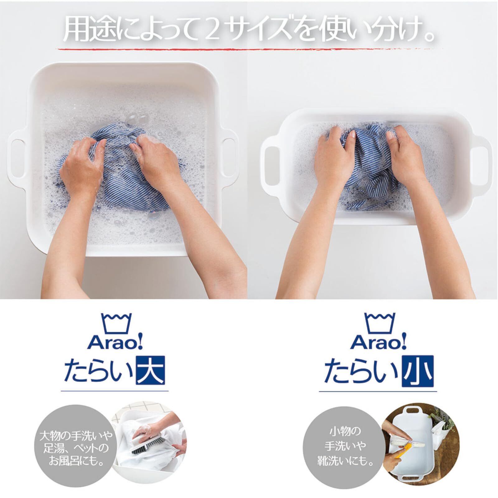 オーエ 洗濯 桶 白 縦42×横21×奥行15.5cm Arao! たらい 小 スリムタイプ すっきり収納 つけ置き 靴洗いにも 日本製