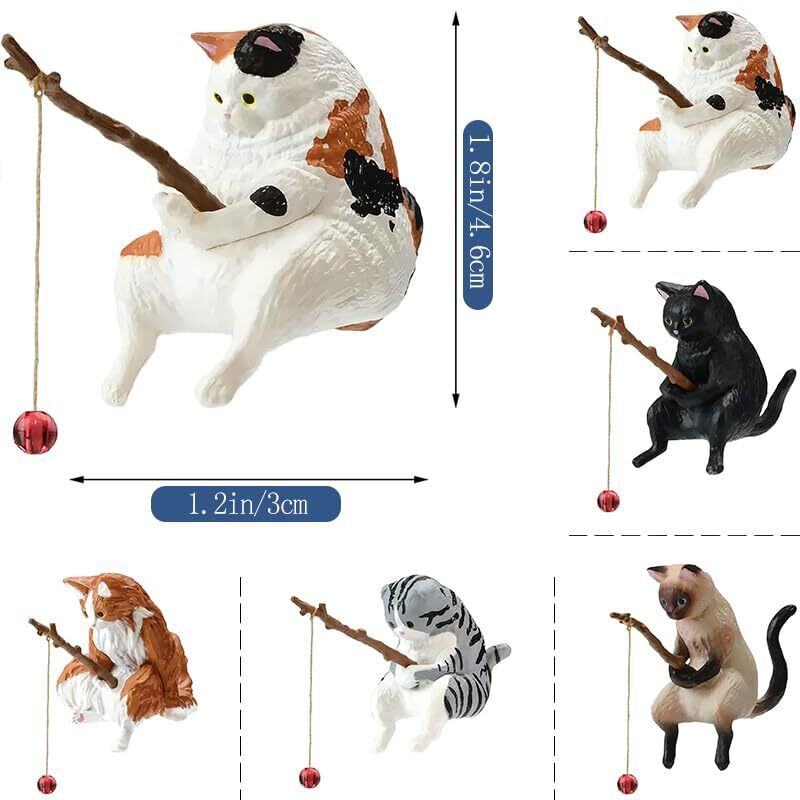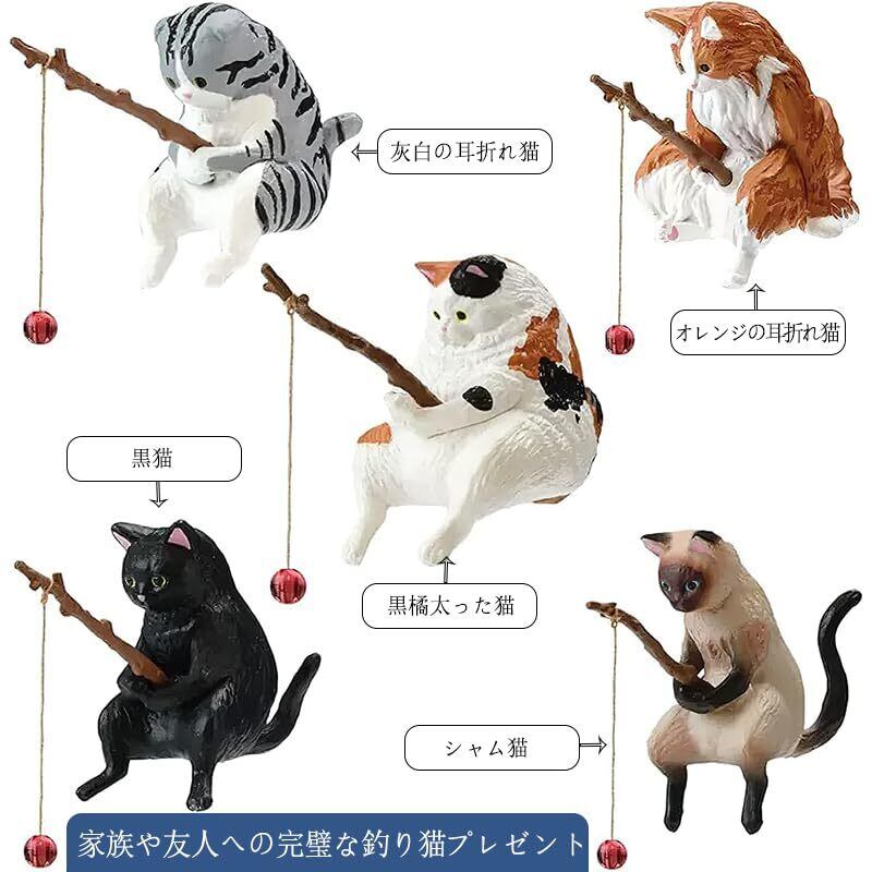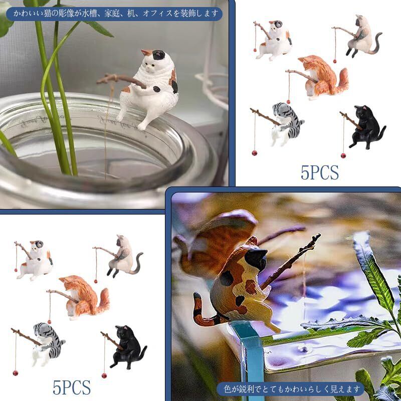 5個 釣り猫 置物 ミニ猫の像 水槽 オーナメント 子猫釣り置物 水槽造景 樹脂飾り 水槽用飾り 観賞 装飾品 水槽用アクセサリー 店舗飾り オブジェ 雰囲気を作る 家庭用 アクアリウム 用