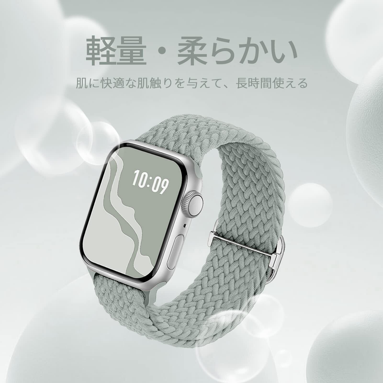 【ユニークな編み込みデザイン】アップルウォッチ 編み込みバンド。伸縮性のある高品質なナイロン糸素材で、高精度な編み込む技術でバンドを織って、特殊な加工で糸が抜けにくいし、何度の着脱も変形にくいです。