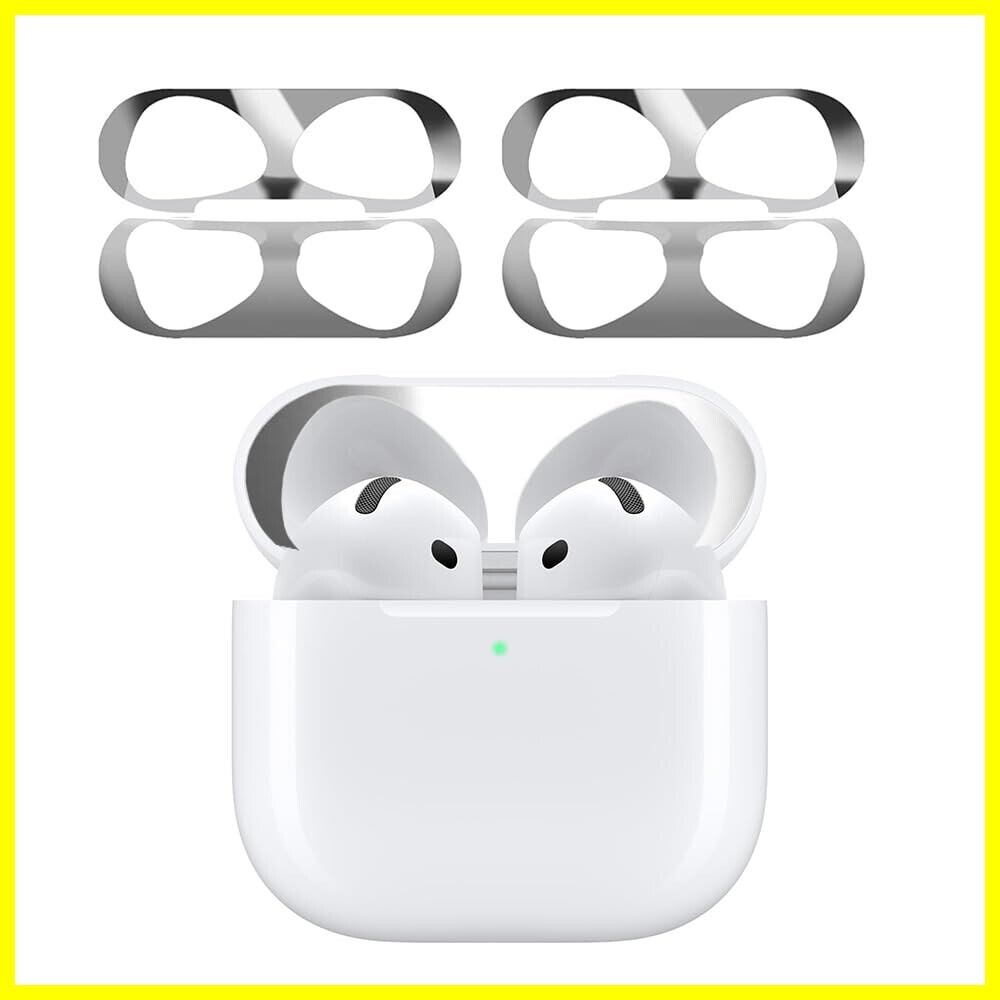 【2024強化版】AMAPC for AirPods 4 ダストガード エアーポッズ 4用 ガードカバー 故障防止 吸着 ほこり ゴミ 金属製 侵入防止 防塵 粉塵防止 シルバー 4枚(2セット)