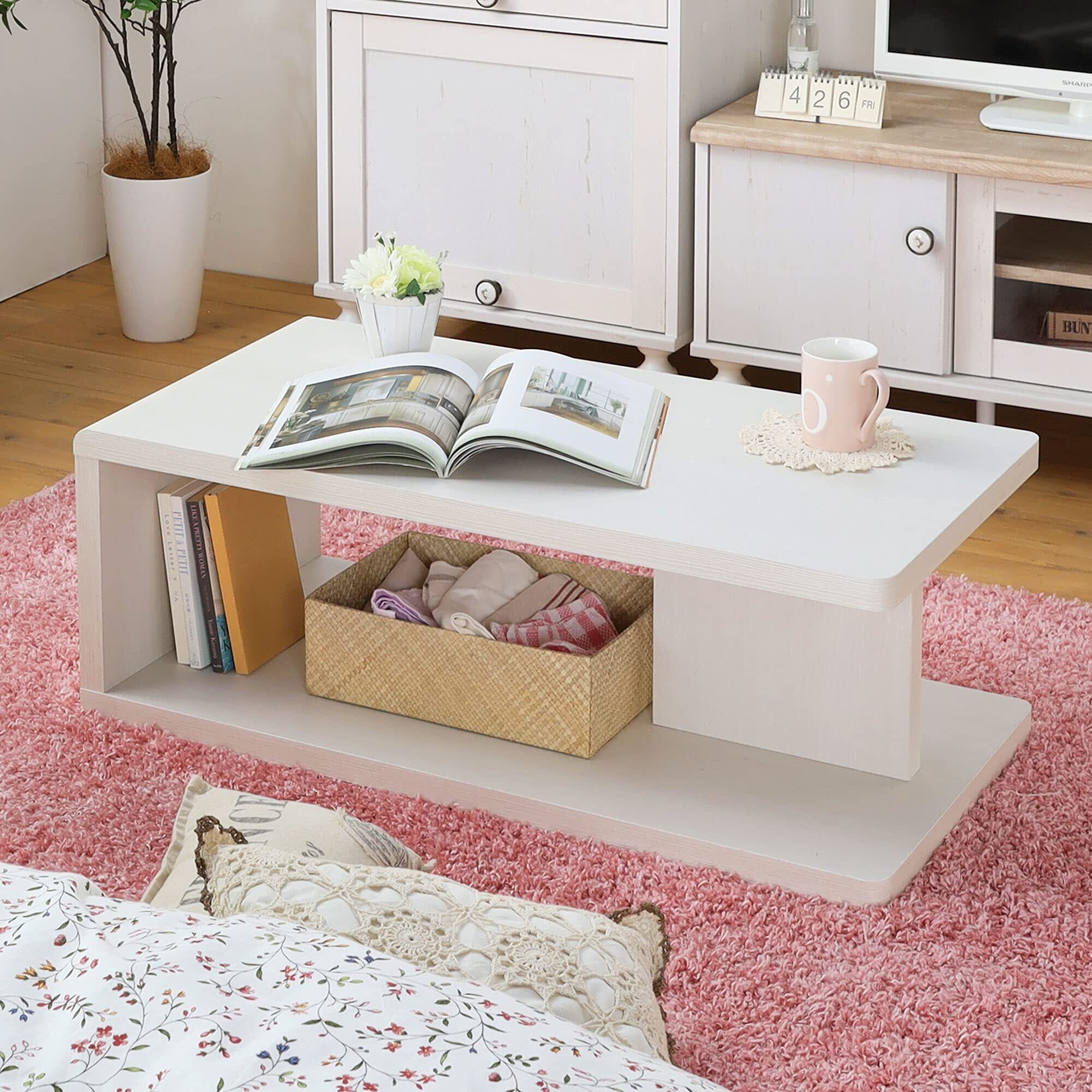 白井産業 ローテーブル 机 おしゃれ シンプル かわいい ホワイト 白木目 幅89.7 高さ31.6 奥行45cm KI2-9045TWH キアエッセ2
