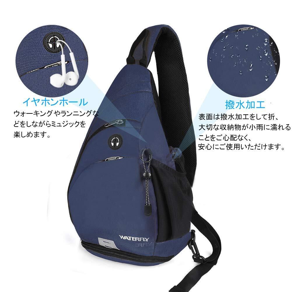 [ウォーターフライ] ボディバッグ ワンショルダーバッグ 斜めがけ 大容量 防水 軽量 イヤホン穴付き ショルダー付替え可能 スポーツ アウトドア サイクリング カジュアル 旅行