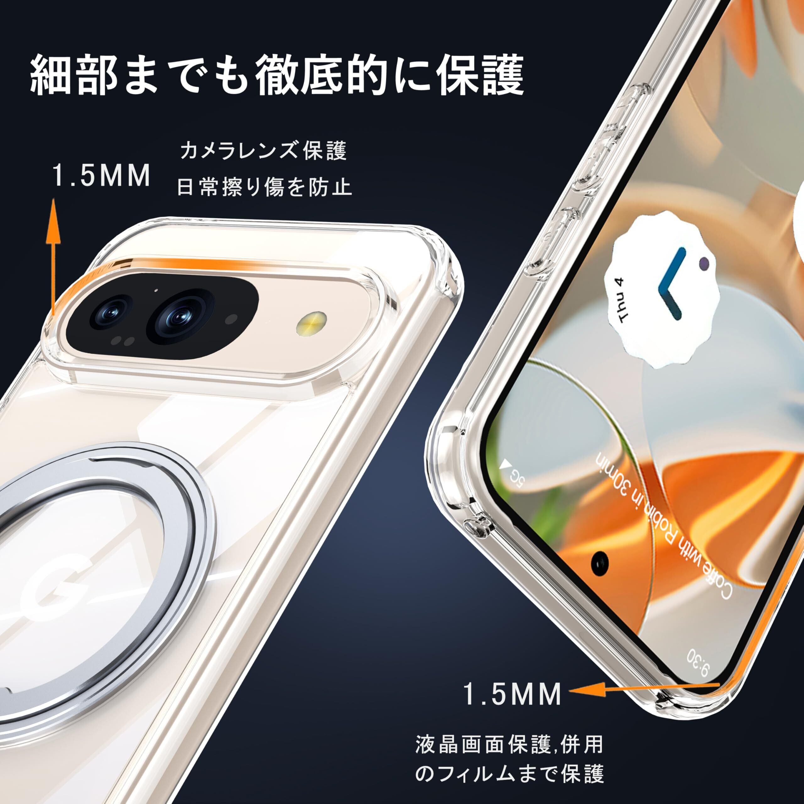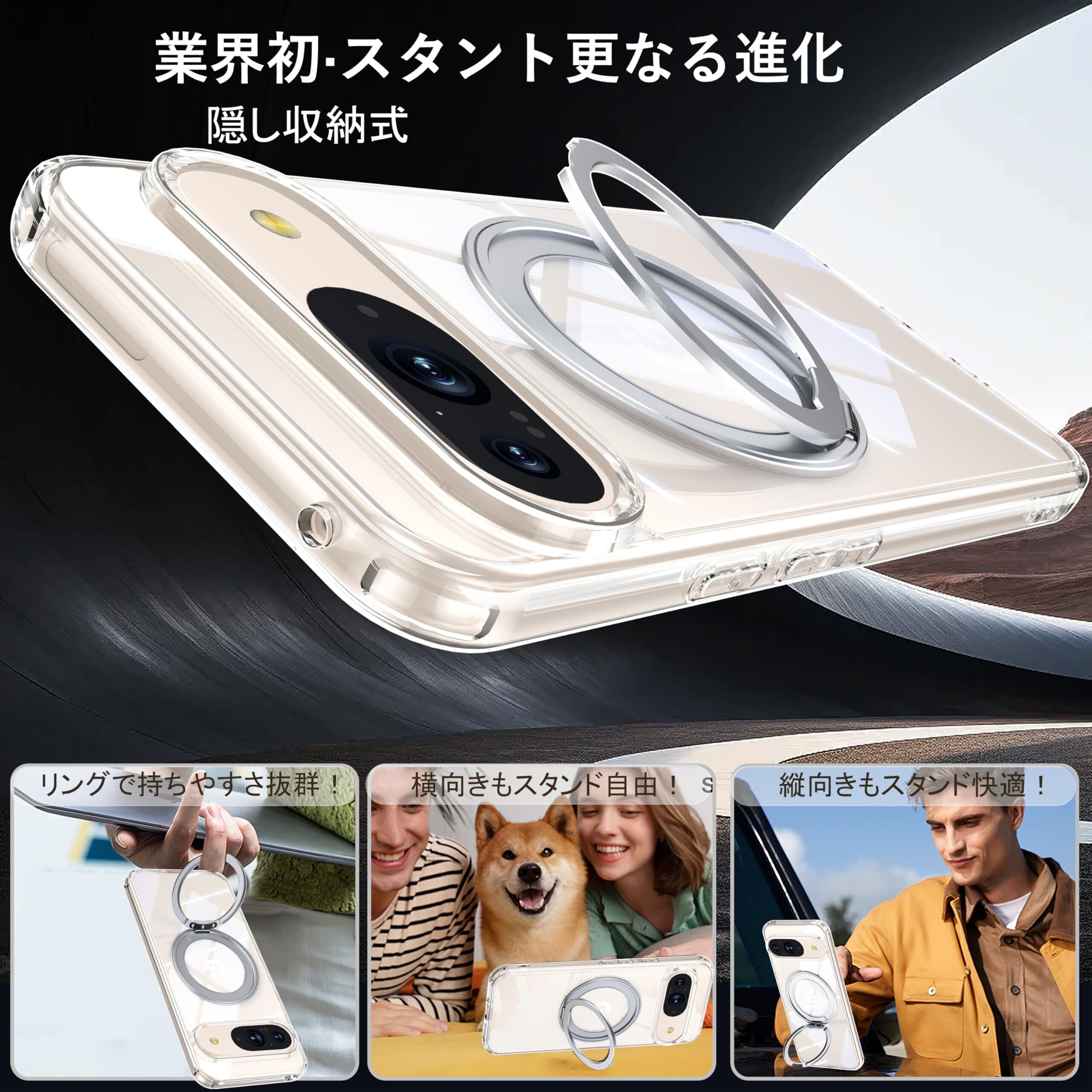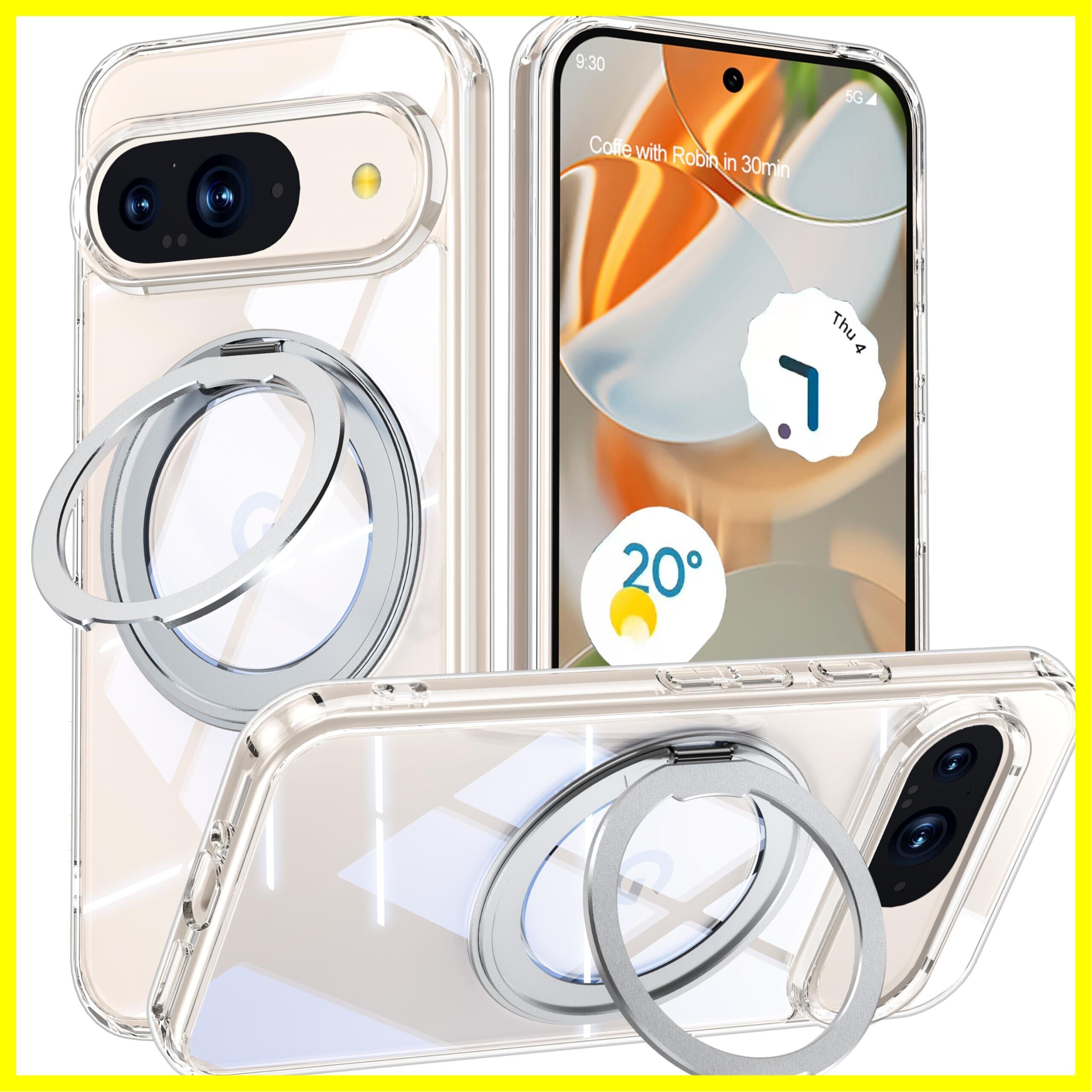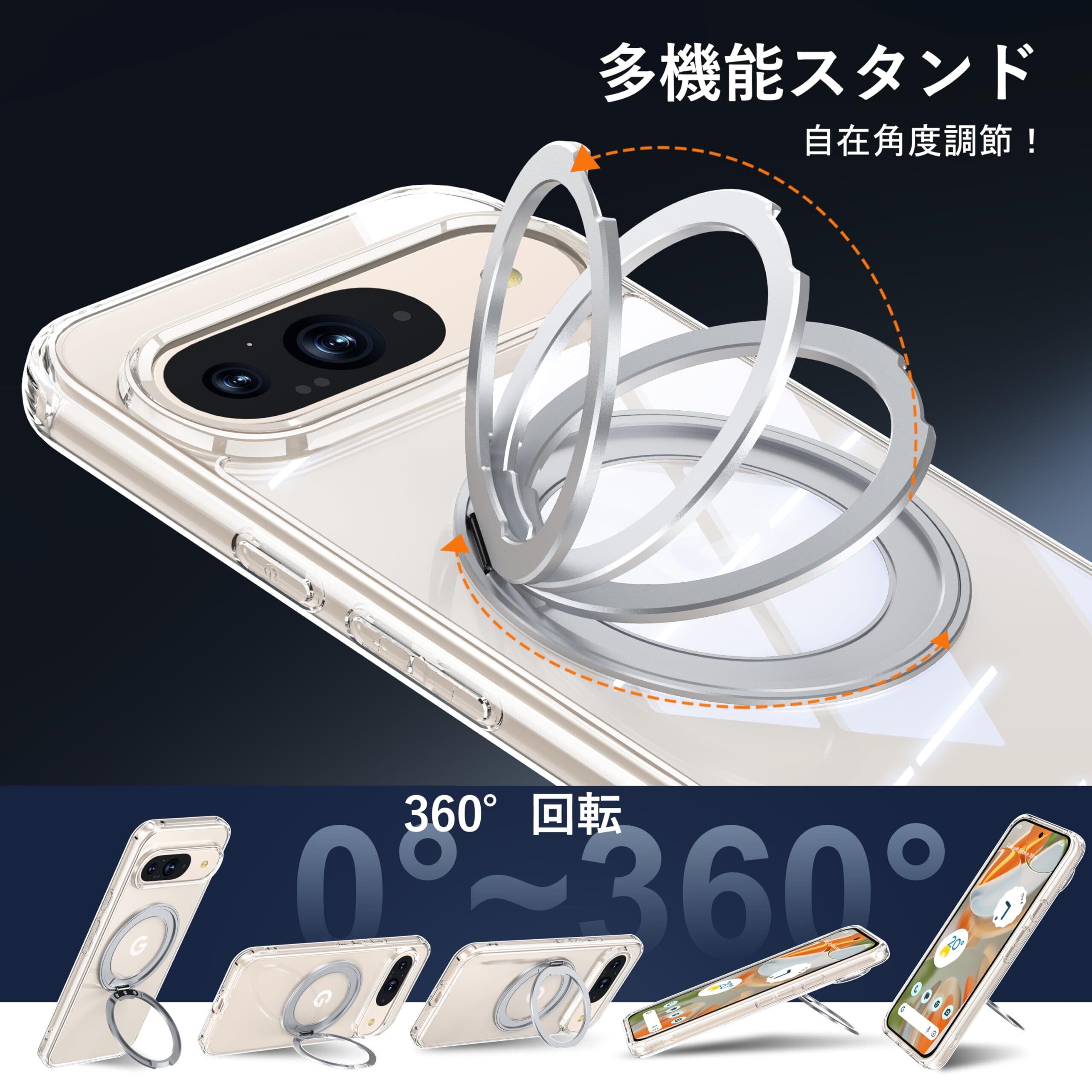 Google Pixel 9 / Pixel 9 Pro 用 ケース Magsafe対応 ピクセル9 プロ カバー 360°回転スタンド Uovon スマホケース 携帯ケース ワイヤレス充電 車載ホルダー 対応 ストラップ穴付き 透明 指紋防止 黄变防止 ・ クリア