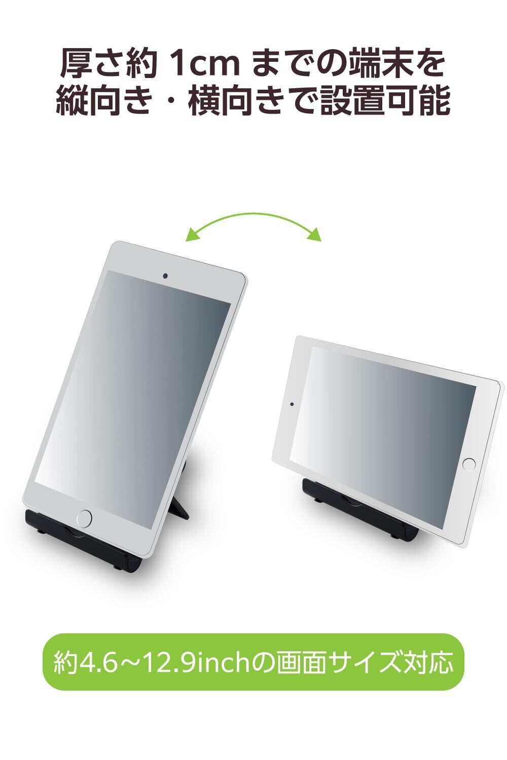 エレコム タブレット スマホ スタンド 4.6~12.9インチ対応 10段階 角度調節 角度固定 折り畳み時 厚さ約2cm 軽量 持ち運び 【 iPhone iPad Pro Air mini FireHD Huawei Galaxy GooglePixcel Switch 】 ブラック TBWDSCMPTBK