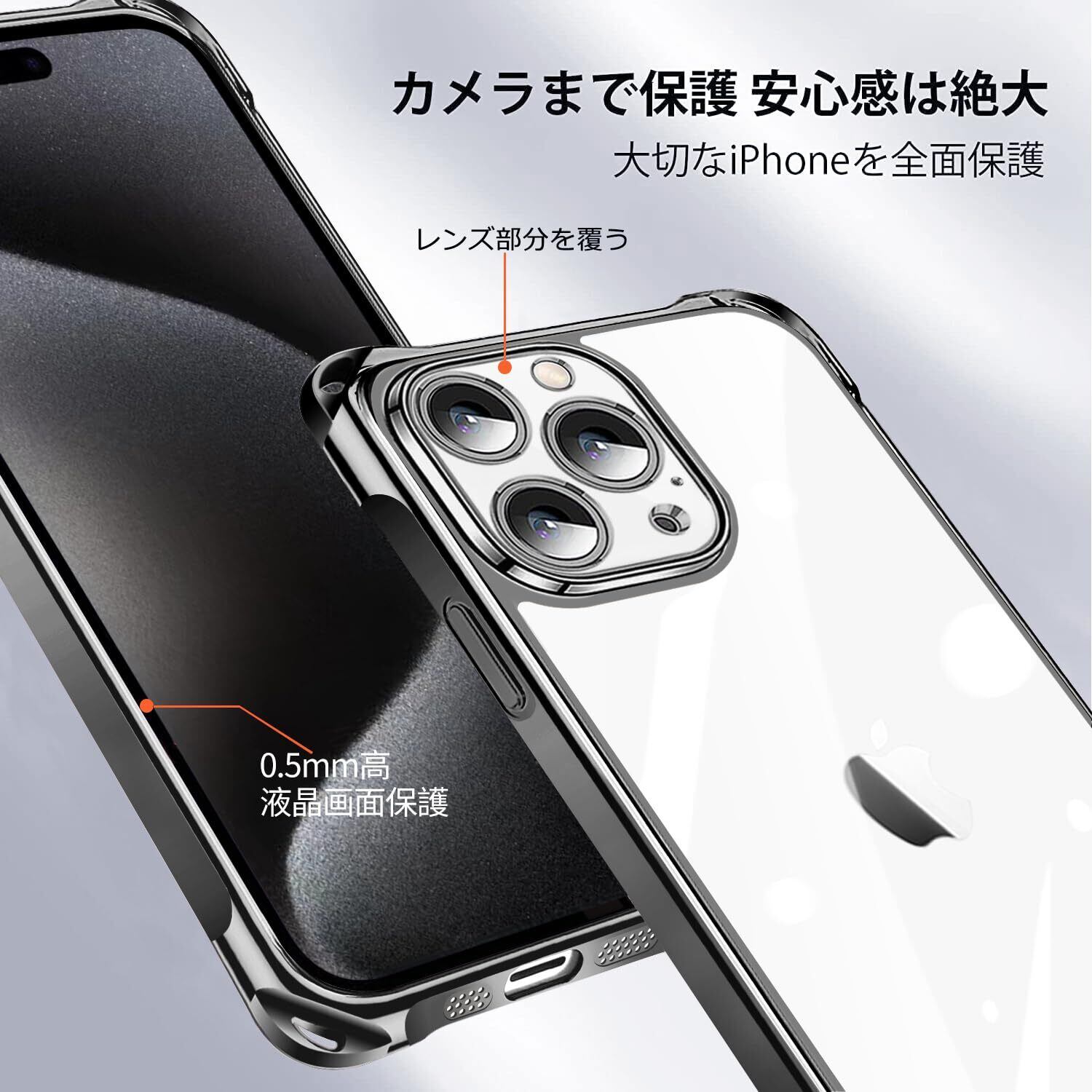 iPhone 15 Pro 用 ケース クリア ショルダー iPhone15pro スマホケース アイフォン15Pro カバー 肩掛け 斜めかけ 縄掛けケース 透明 薄型 軽量 耐衝撃 TPU ストラップ付き 紐付き 斜めがけ 織りストラップ付き ネックストラップ ショルダー 縦/横 2WAY 長さ調整可能 取り外し可能 落下防止 紛失防止 (ブラック)