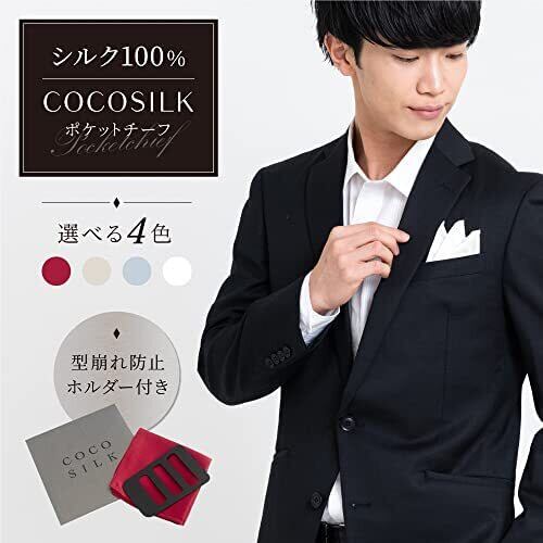 【COCOSILK】 ポケットチーフ 小さめで折りやすい 23×23cm 美しい光沢で胸元を華やかに。 フォーマル ビジネス カジュアル さまざまなシーンで活躍します。