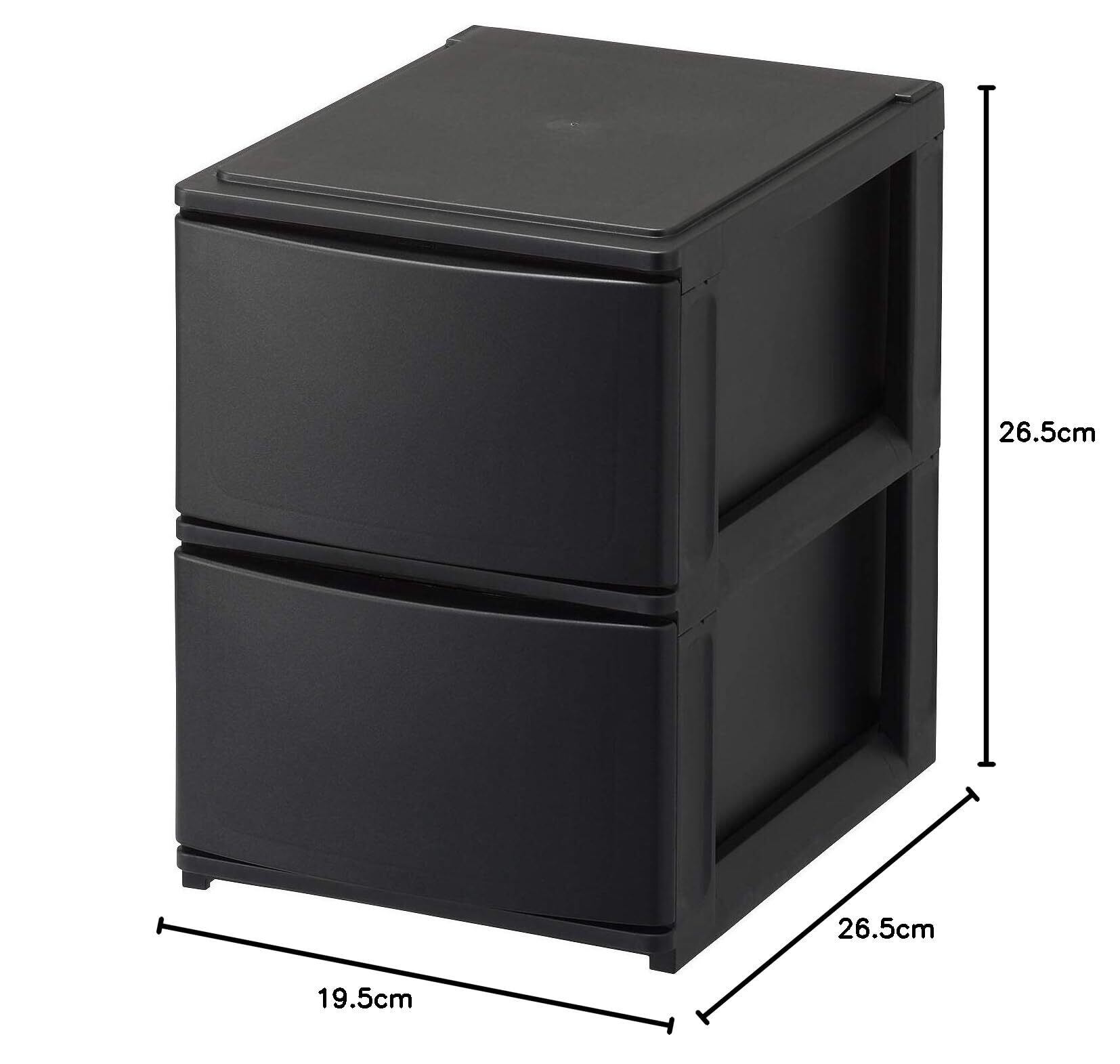 サンカ ポスデコ カラーボックスにピッタリフィット 引き出し収納ボックス ハーフ 深2段 ブラック ずれを防ぐラバーストッパー 重ねて使える スタッキングチェスト ロック機構 日本製 カラーボックス 収納ケース 小物 衣装 ボックス (幅19.5x奥行26.5x高さ26.5cm) NpdA5-f2BK