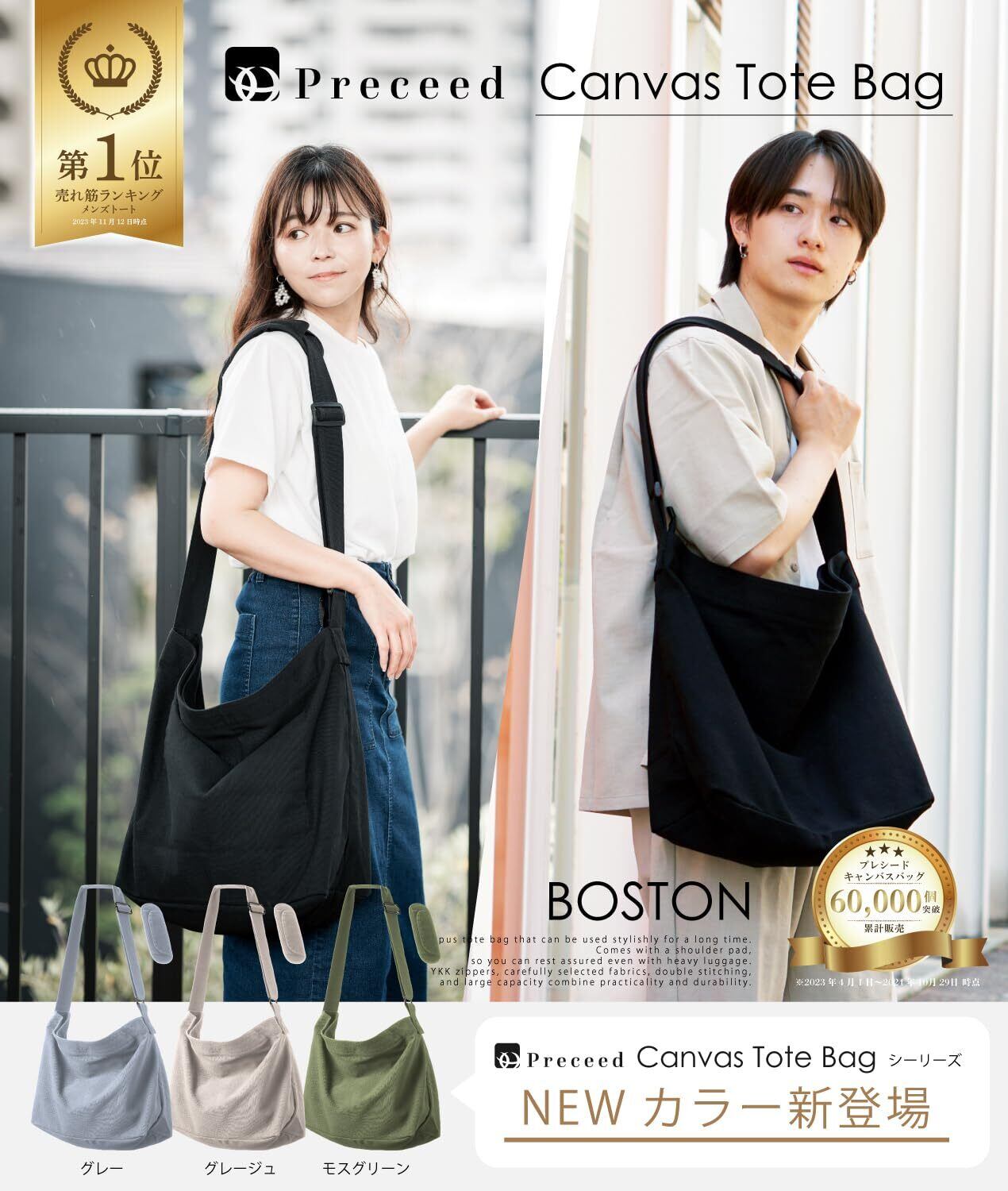 [Preceed] 新色登場」【肩が疲れない】 トートバッグ キャンバス ショルダーバッグ 脱着可能肩パッド 金属製バックル 良質ファスナー 内ポケット2口 大容量 男女兼用 ボストン型